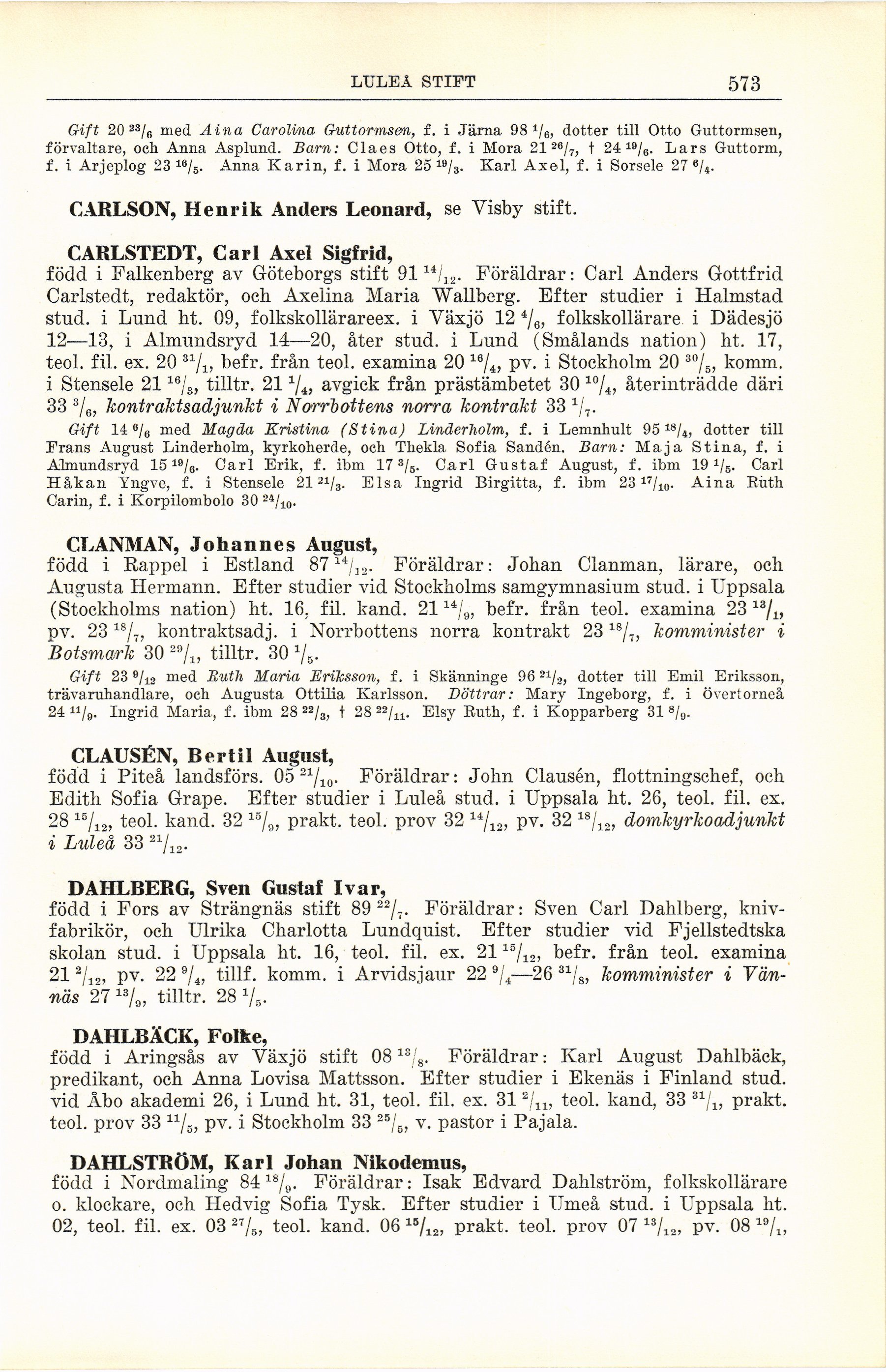 CARLSON, Henrik Anders Leonard, se Visby stift.
