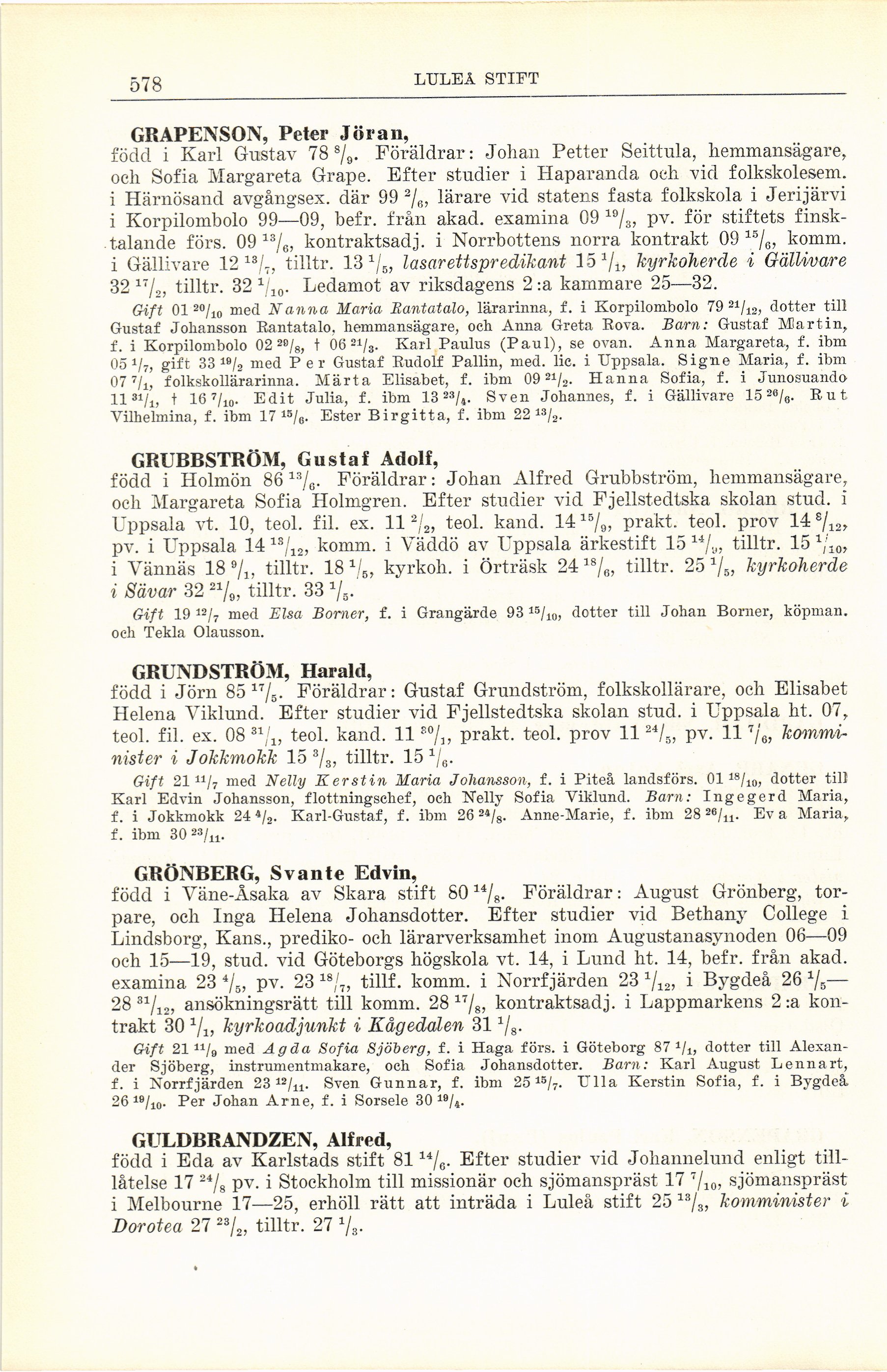 i Gällivare 12 13/7, tilltr. 13 1/5, lasarettspredikant 15 1/1, kyrkoherde i Gällivare