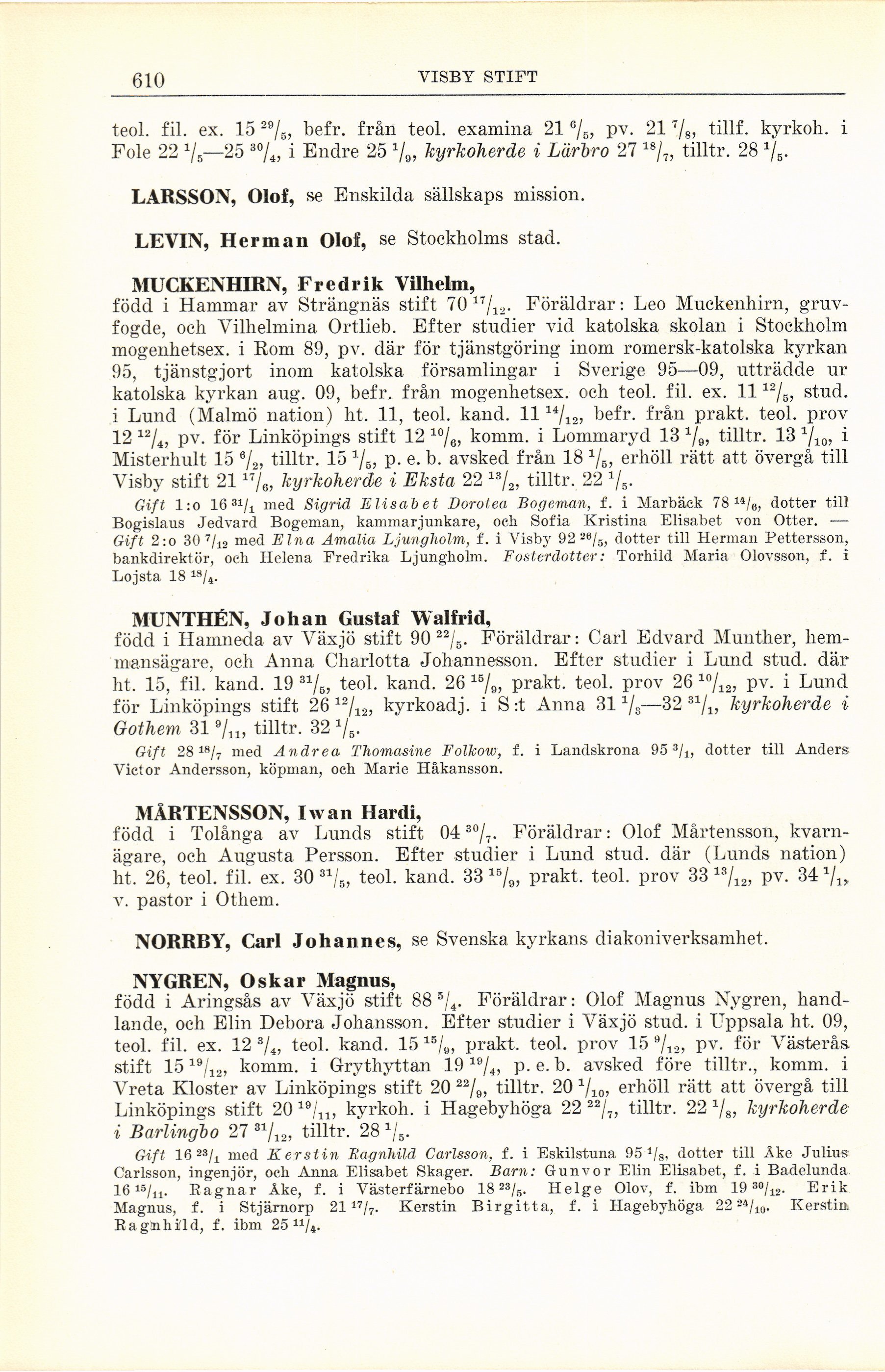 ht. 15, fil. kand. 19 31/5, teol. kand. 26 15/9, prakt. teol. prov 26 10/12, pv. i Lund