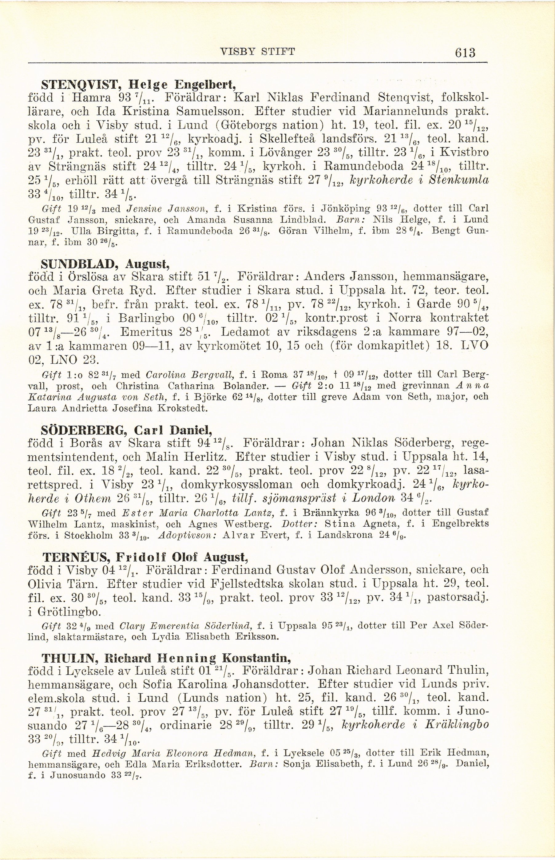 fil. ex. 30 375, teol. kand. 33 15/9, prakt. teol. prov 33 12/12, pv. 34 7pastorsadj.