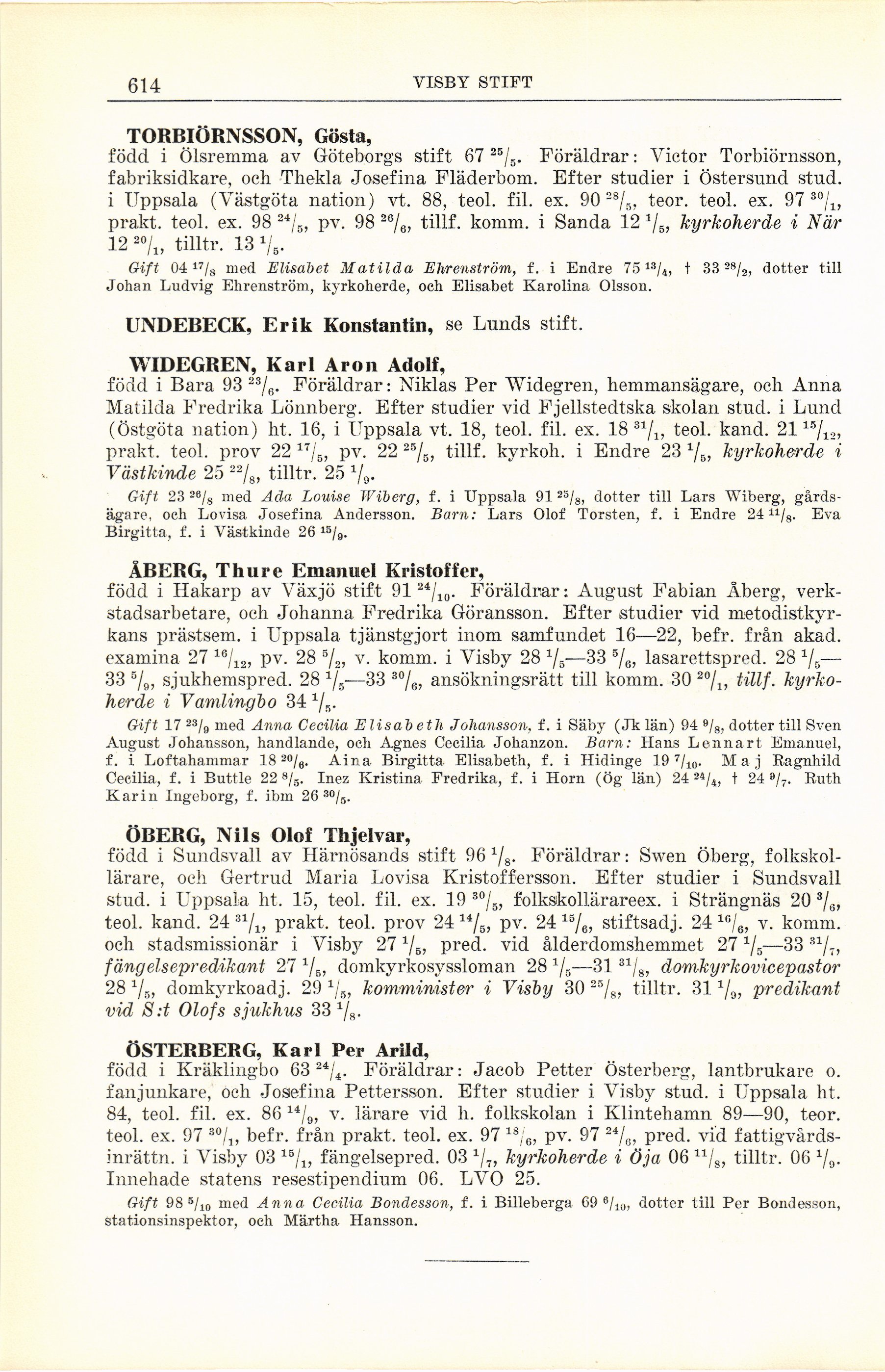 28 1/6, domkyrkoadj. 29 1/5, komminister i Visby 30 25/8, tilltr. 311/0, predikant