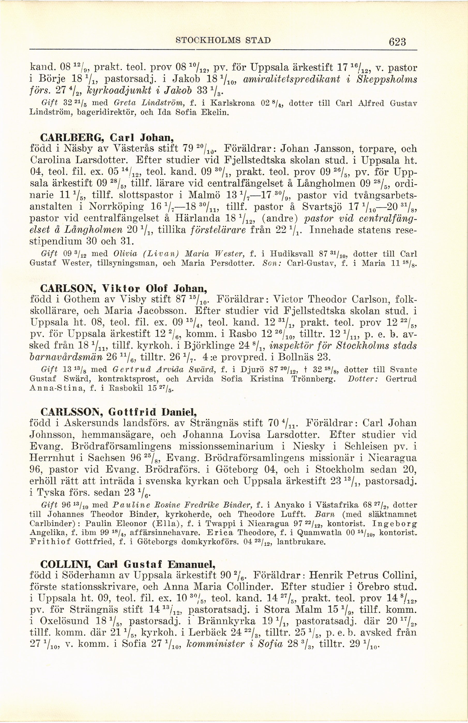 kand. 08 12/9, prakt. teol. prov 08 10/12, pv. för Uppsala ärkestift 17 16/12, v. pastor