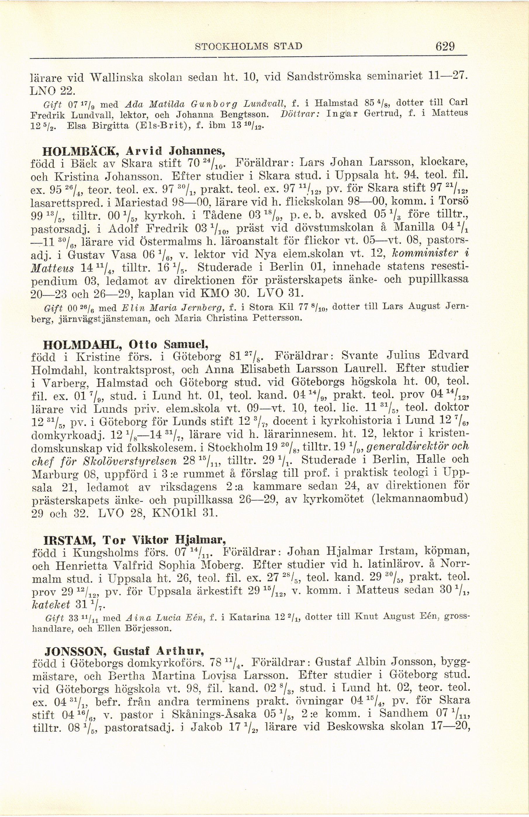pastorsadj. i Gustav Vasa 06 v. lektor vid Nya elem.skolan vt. 12, komminister i
