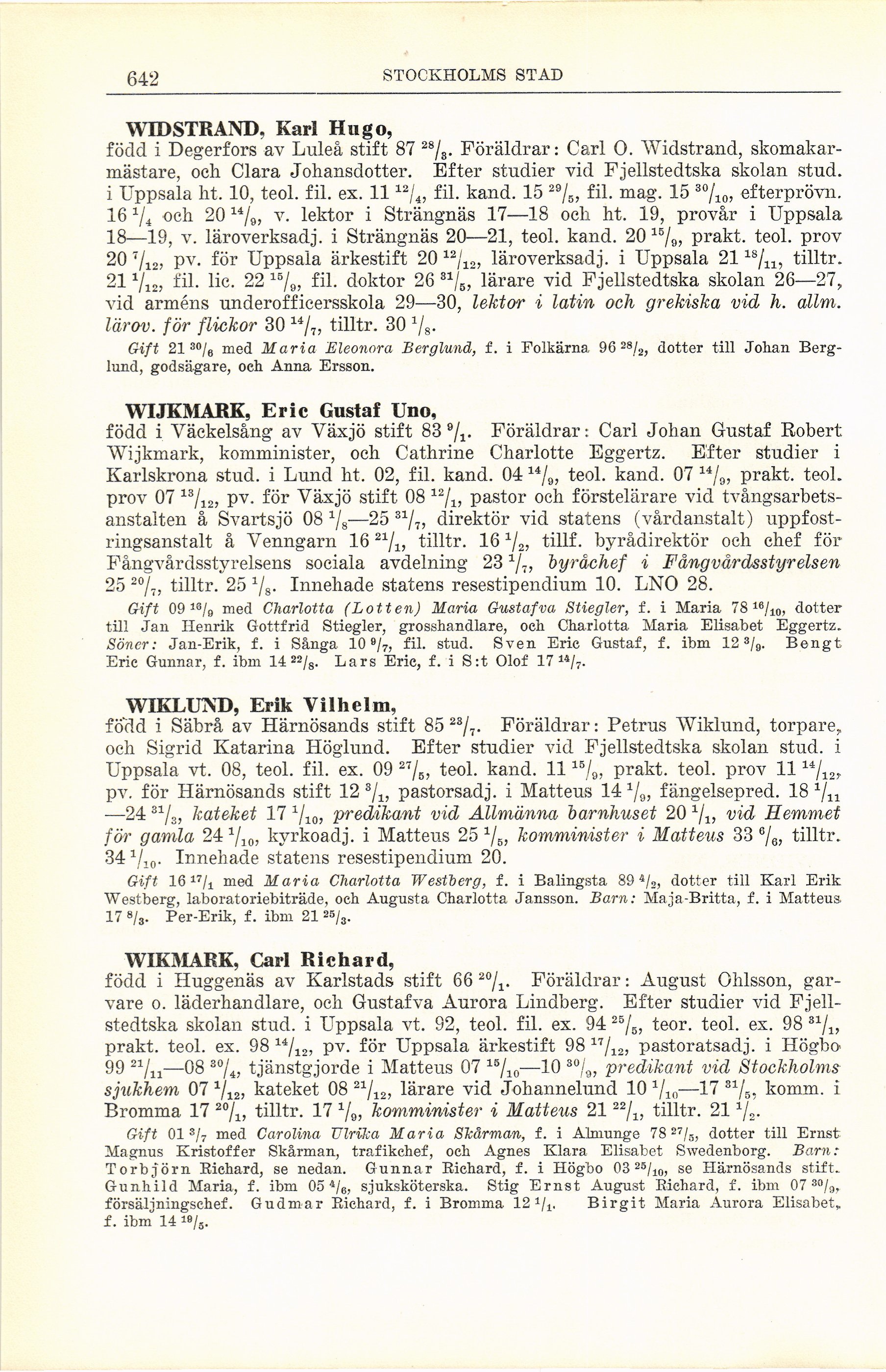 18—19, v. läroverksadj. i Strängnäs 20—21, teol. kand. 20 15/9, prakt. teol. prov