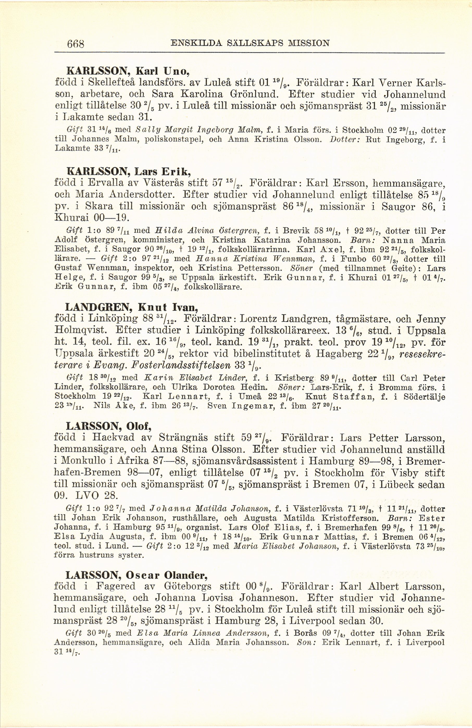 född i Linköping 88 31/12. Föräldrar: Lorentz Landgren, tågmästare, och Jenny