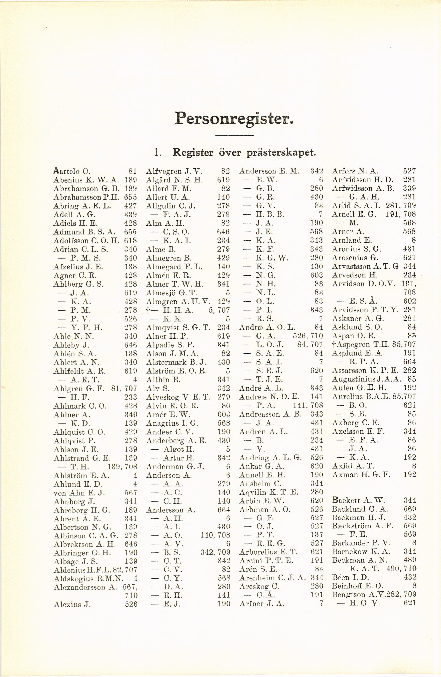1. Register över prästerskapet.