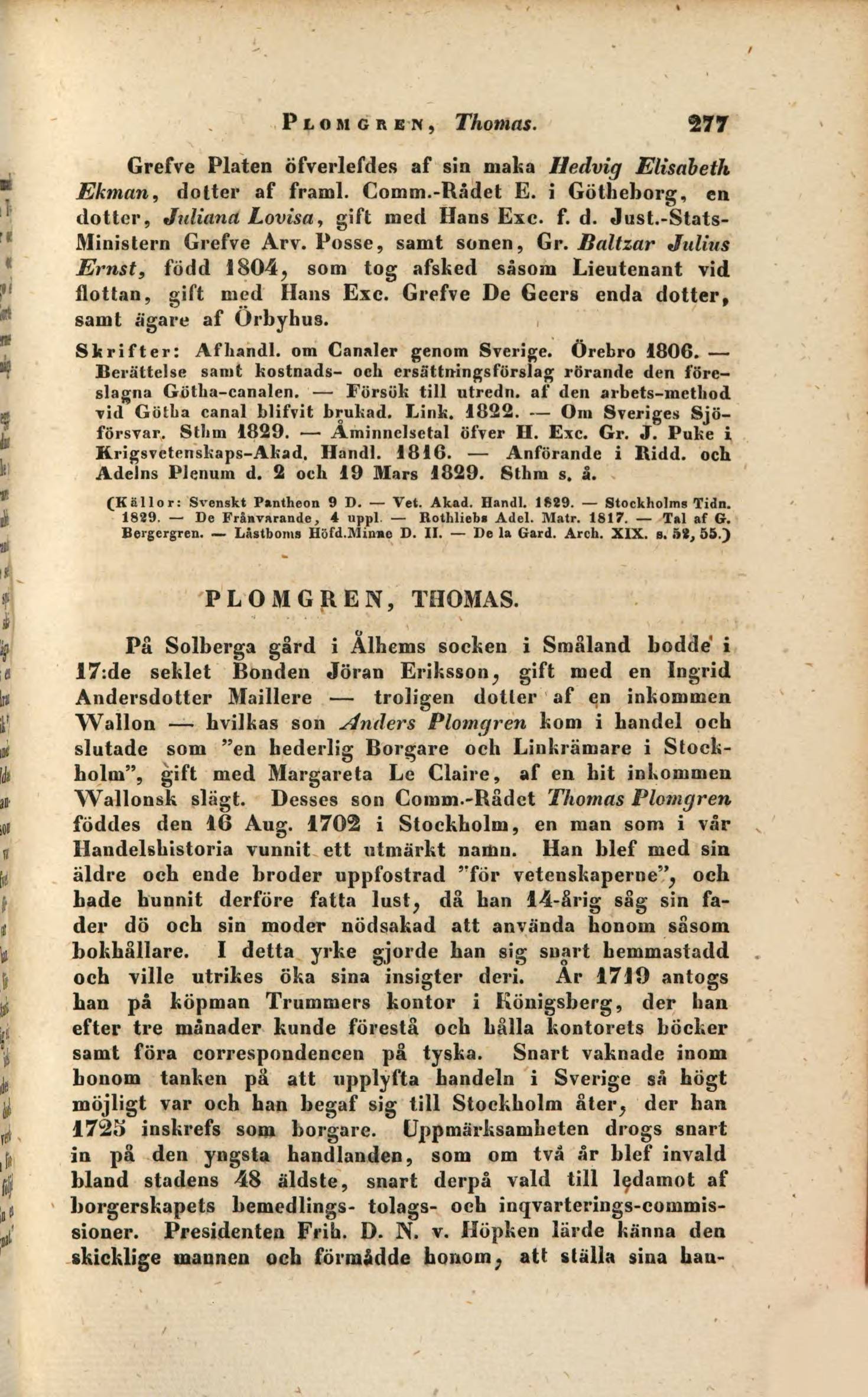 Wallonsk slägt. Desses son Comm.-Rådct Thomas Plomgren