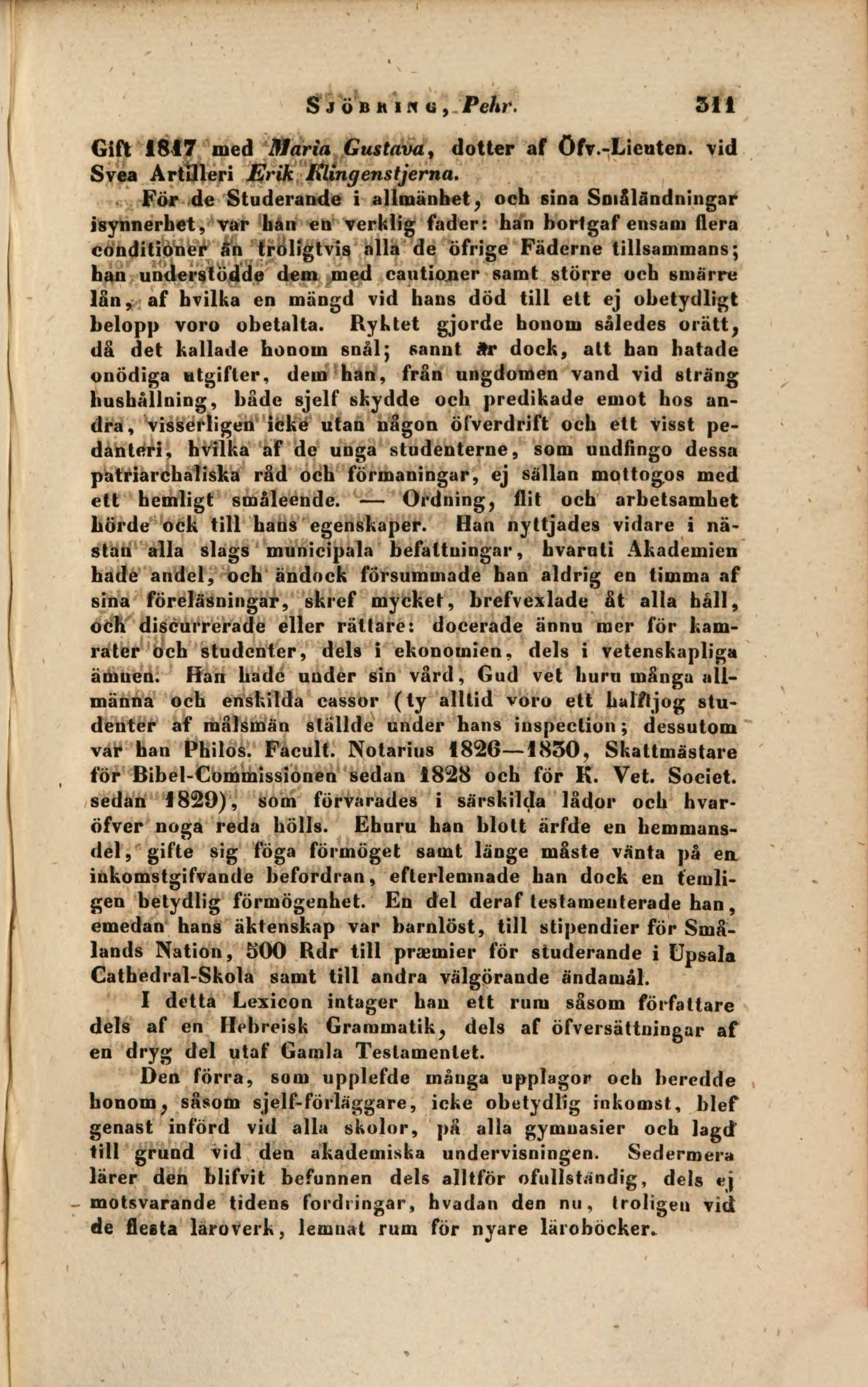 för Bibel-Gommissionen sedan 1828 och för K. Vet. Societ.