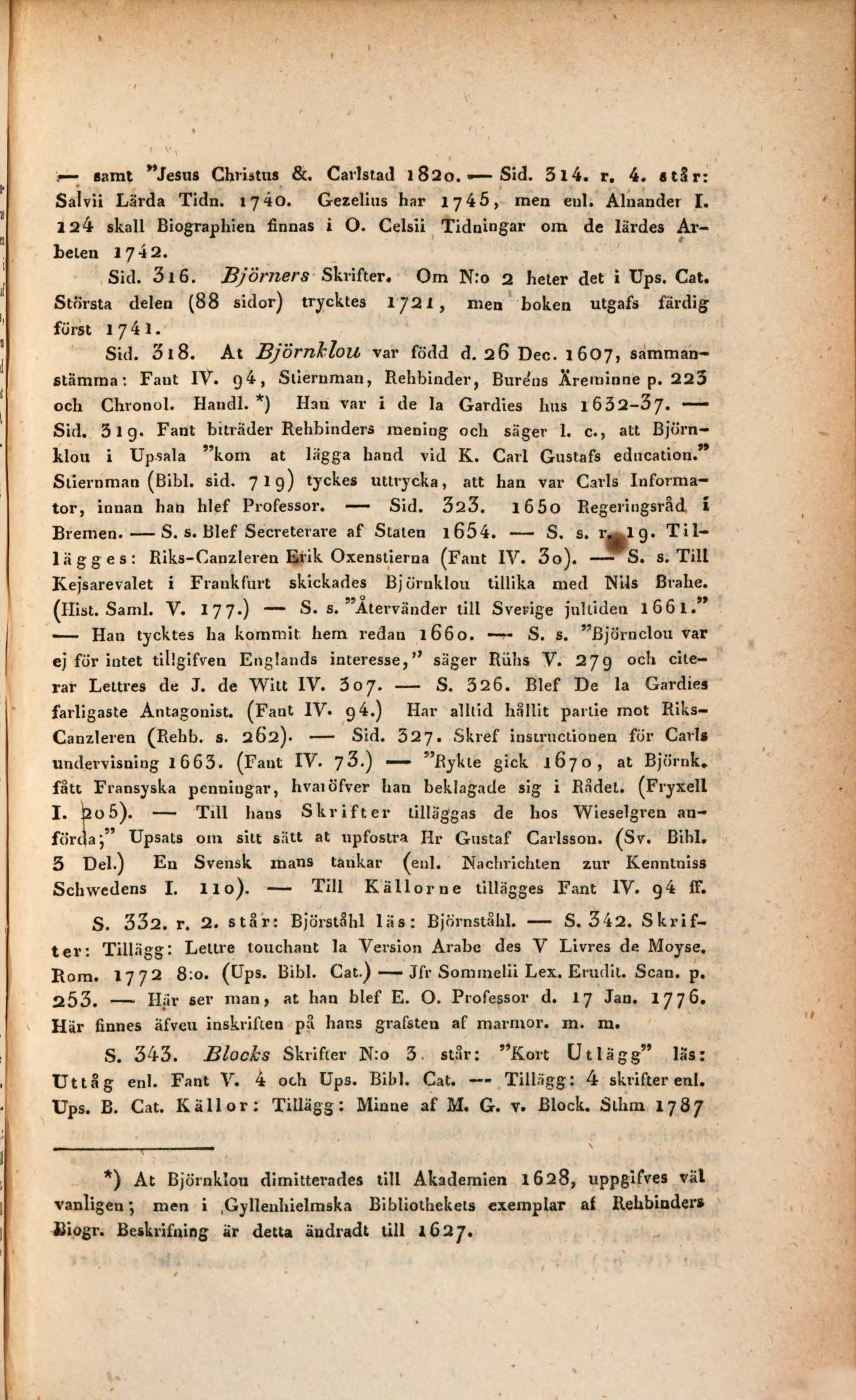 S. 332. r. 2. Står: Björstähl läs: Björnståhl. — S. 342.