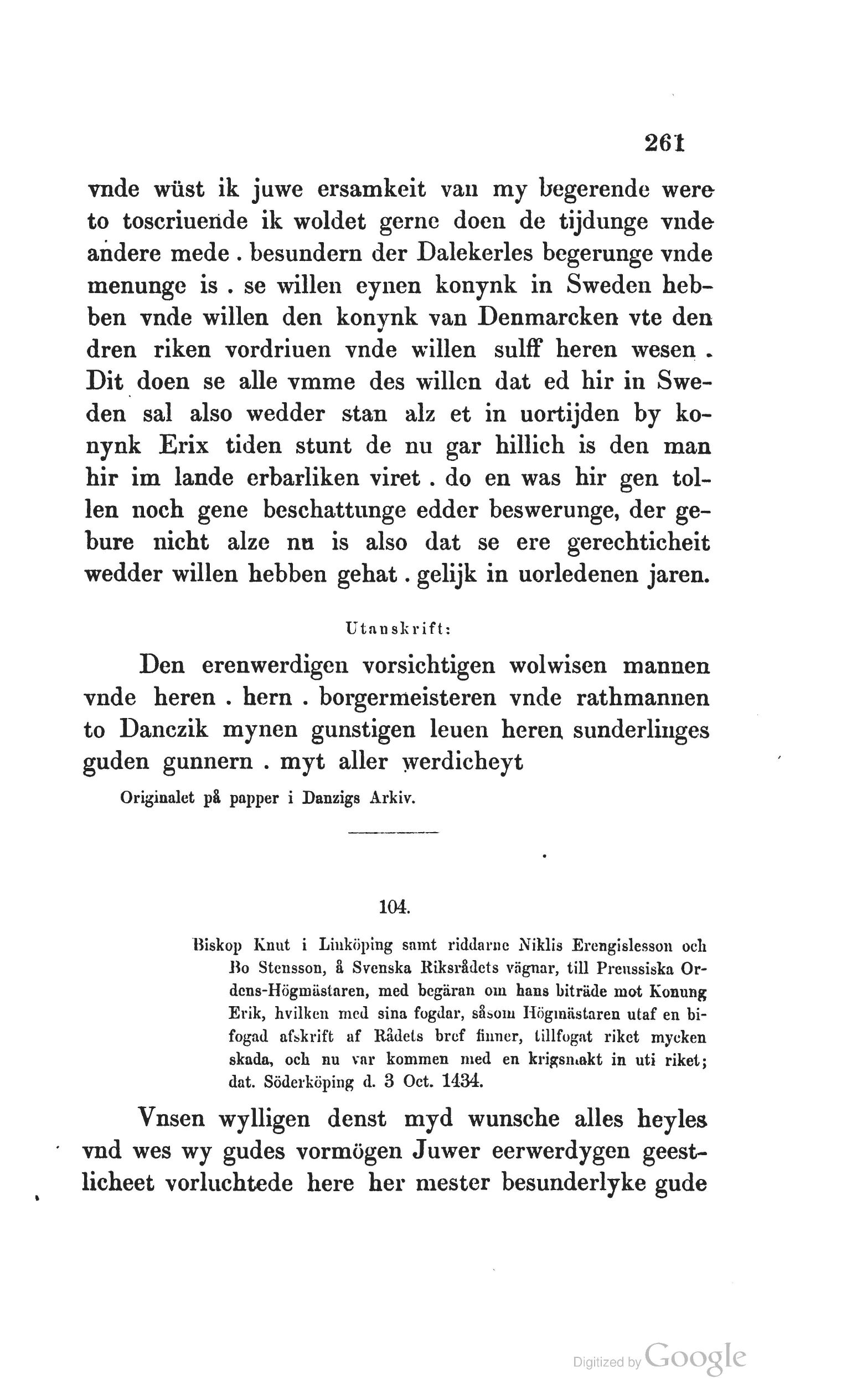 Originalet på papper i Danzigs Arkiv.