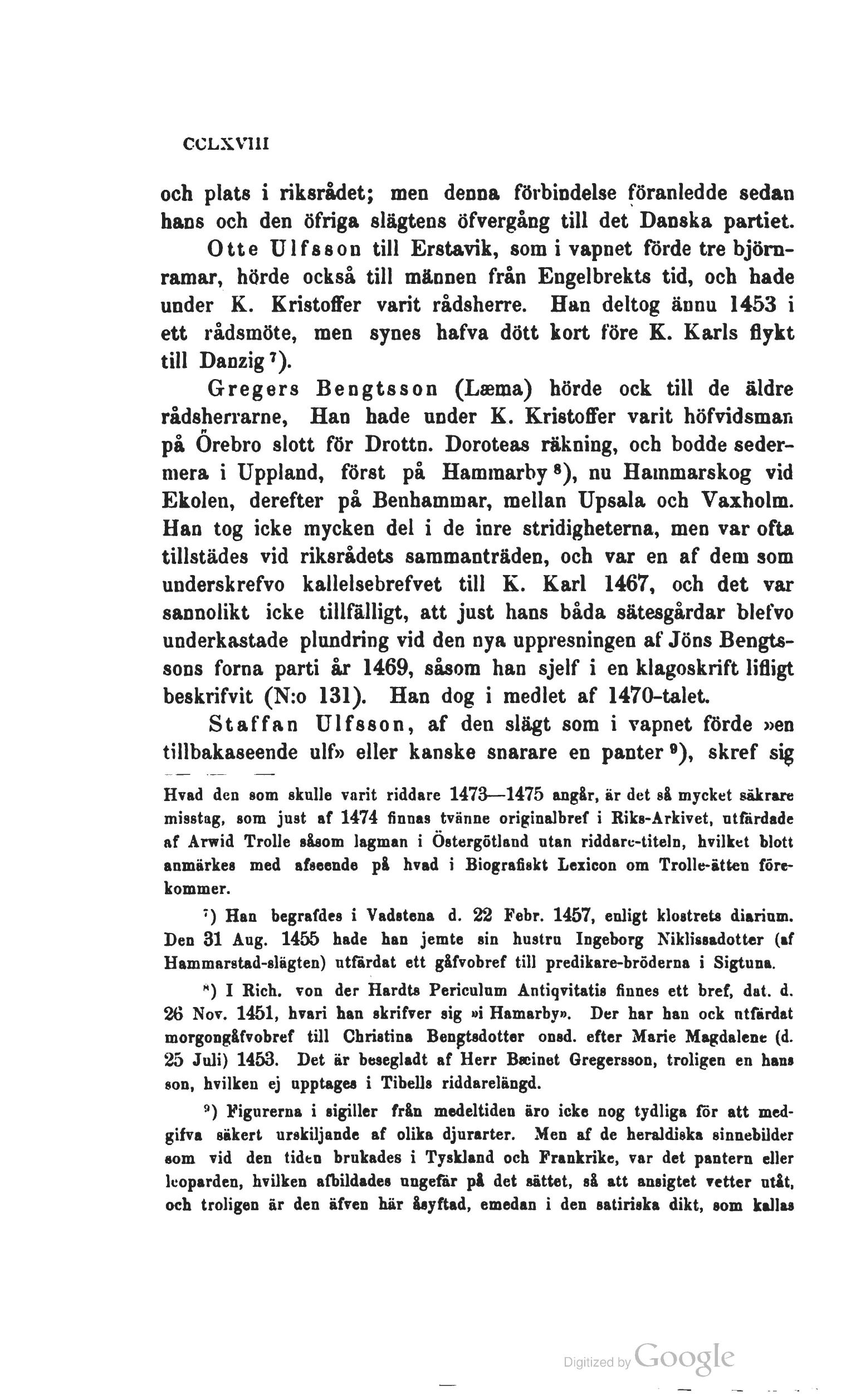 ;) Han begrafdes i Vadstena d. 22 Febr. 1457, enligt klostrets diarium.