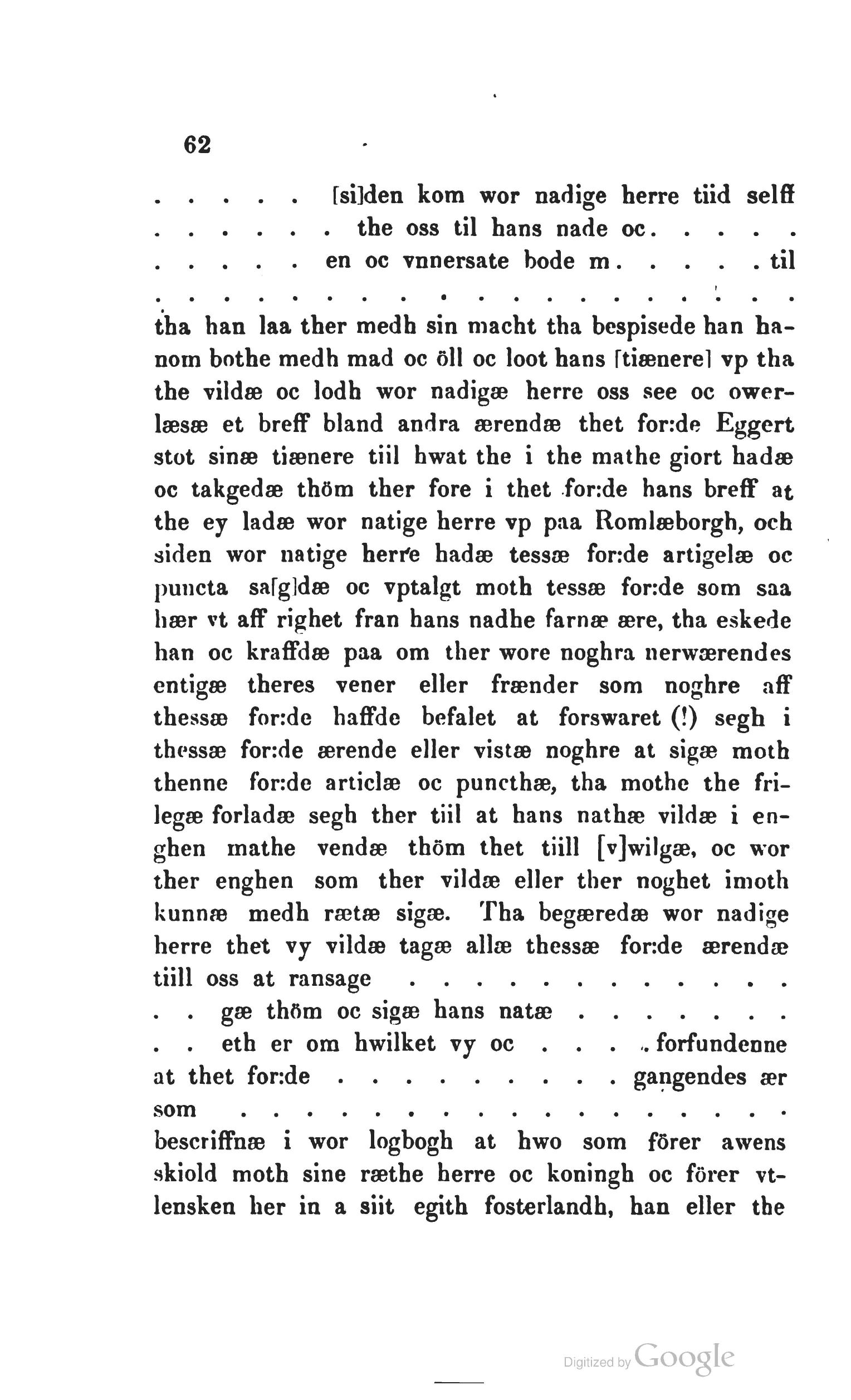 hær vt aff righet fran hans nadhe farnæ ære, tha eskede