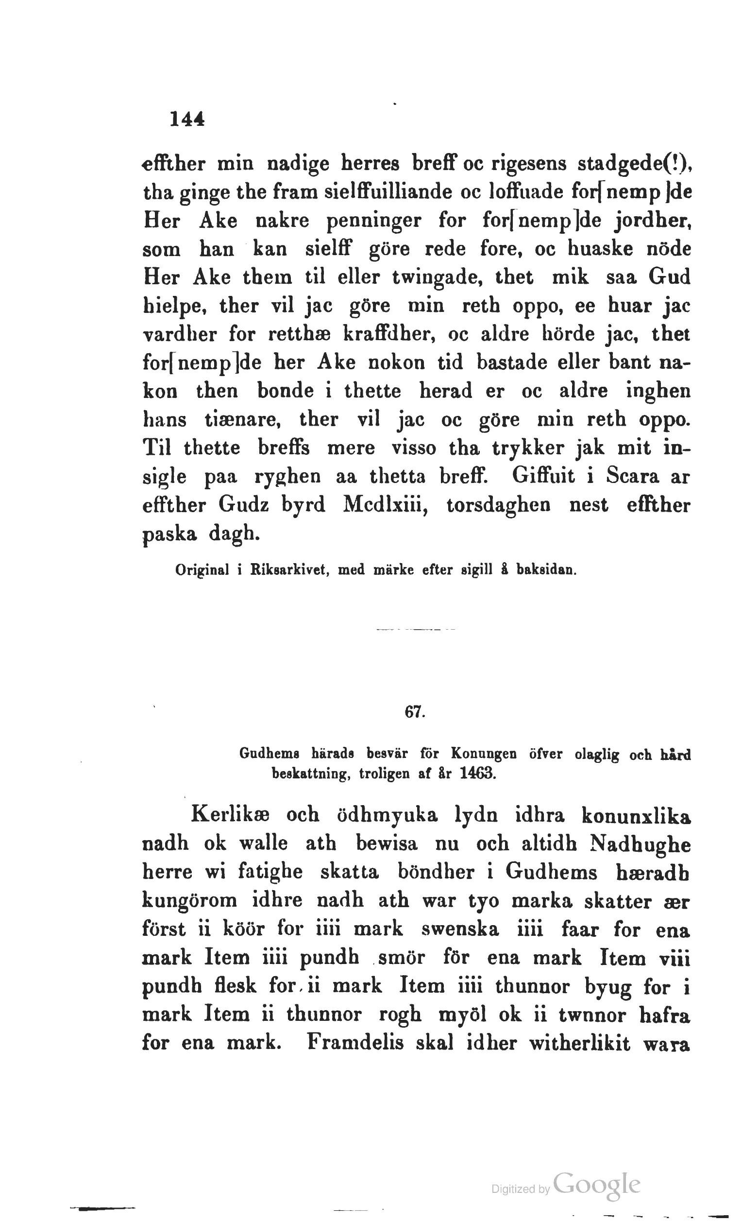 Gndhems härads besvär för Konungen öfver olaglig och hård