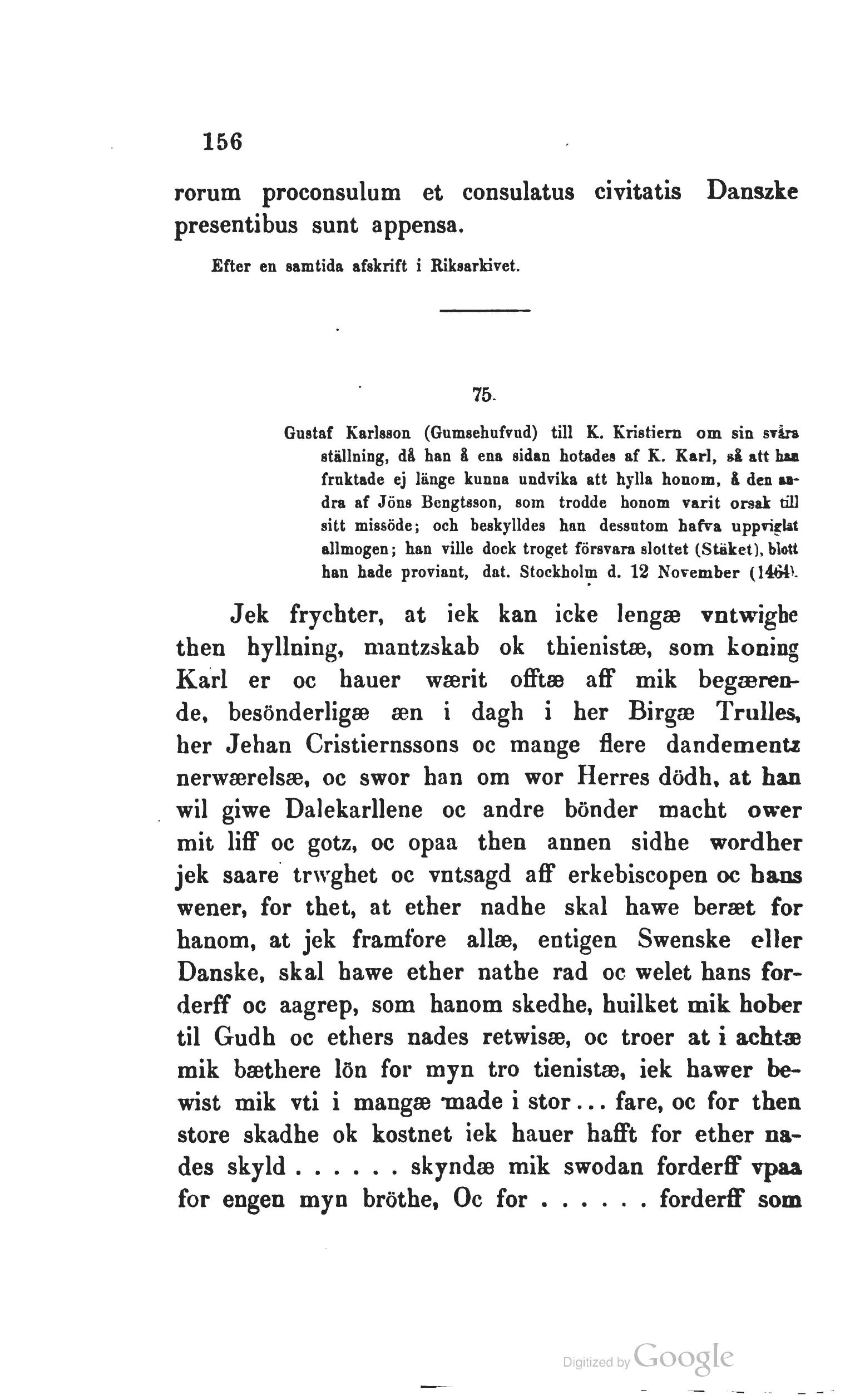 han hade proviant, dat. Stockholm d. 12 November (1461V