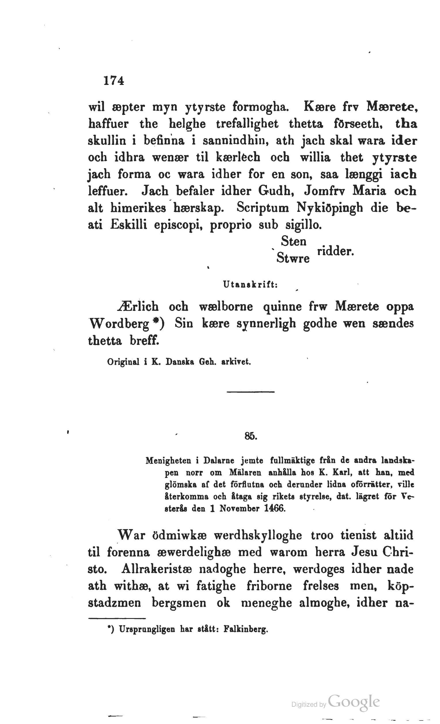 Vesterås den 1 November 1466.