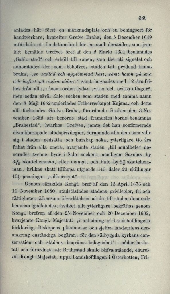 beslutat och förordnat, att Brahestad skulle blifva stående,