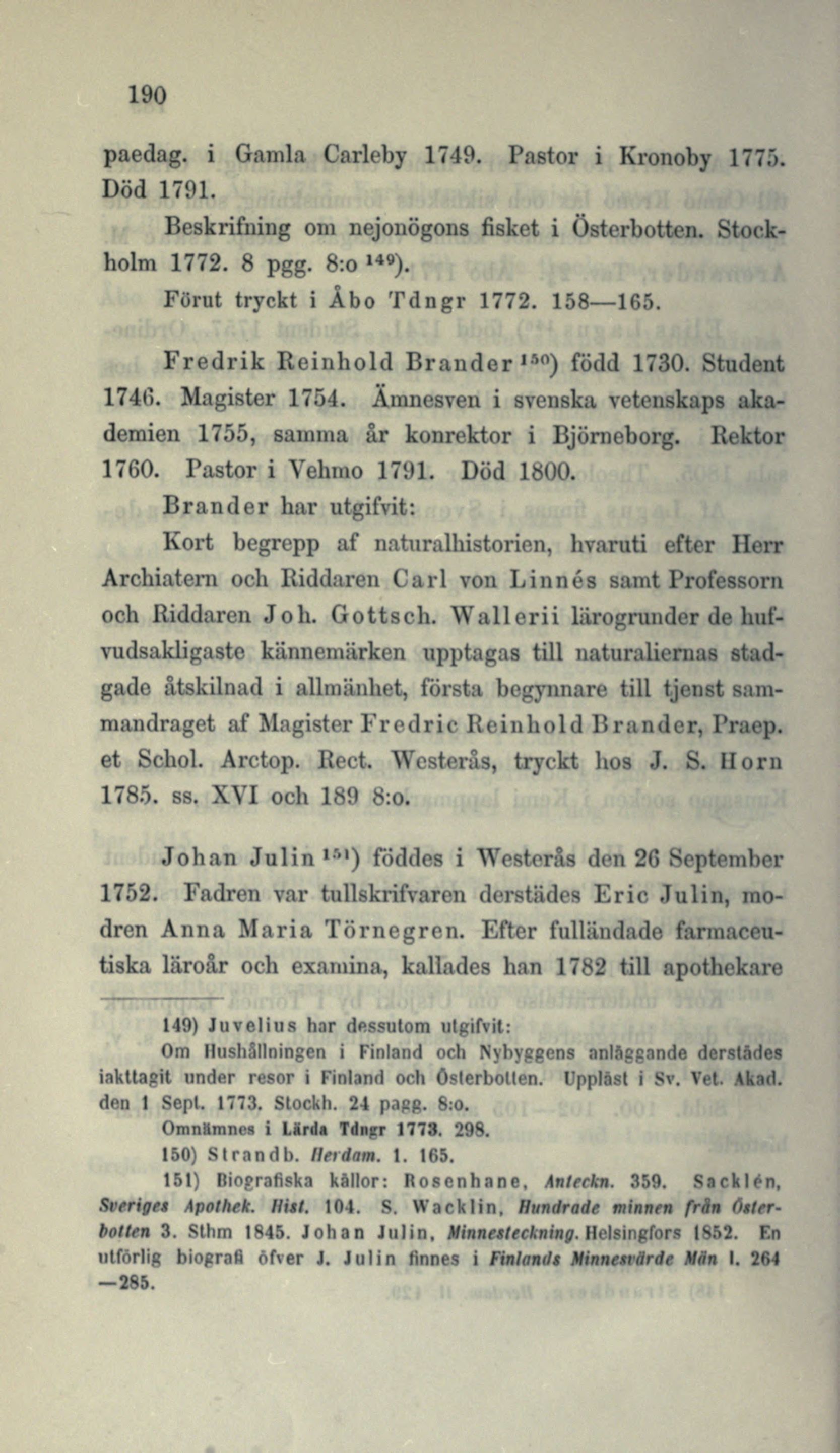 Österbotten 3. Sthm 1845. Johan Julin, Minnesteckning. Helsingfors 1852. En