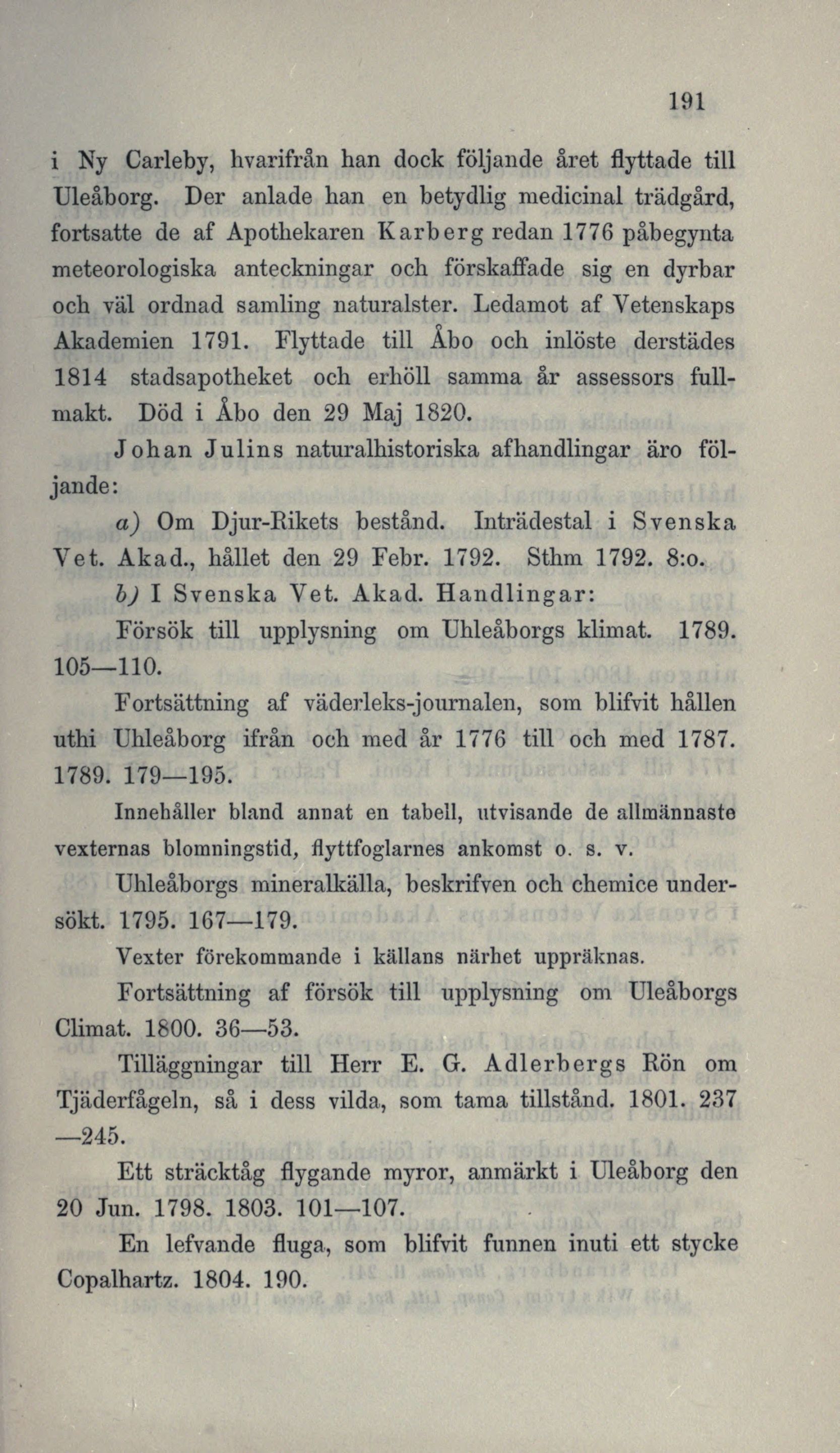 Uleåborg. Der anlade han en betydlig medicinal trädgård,