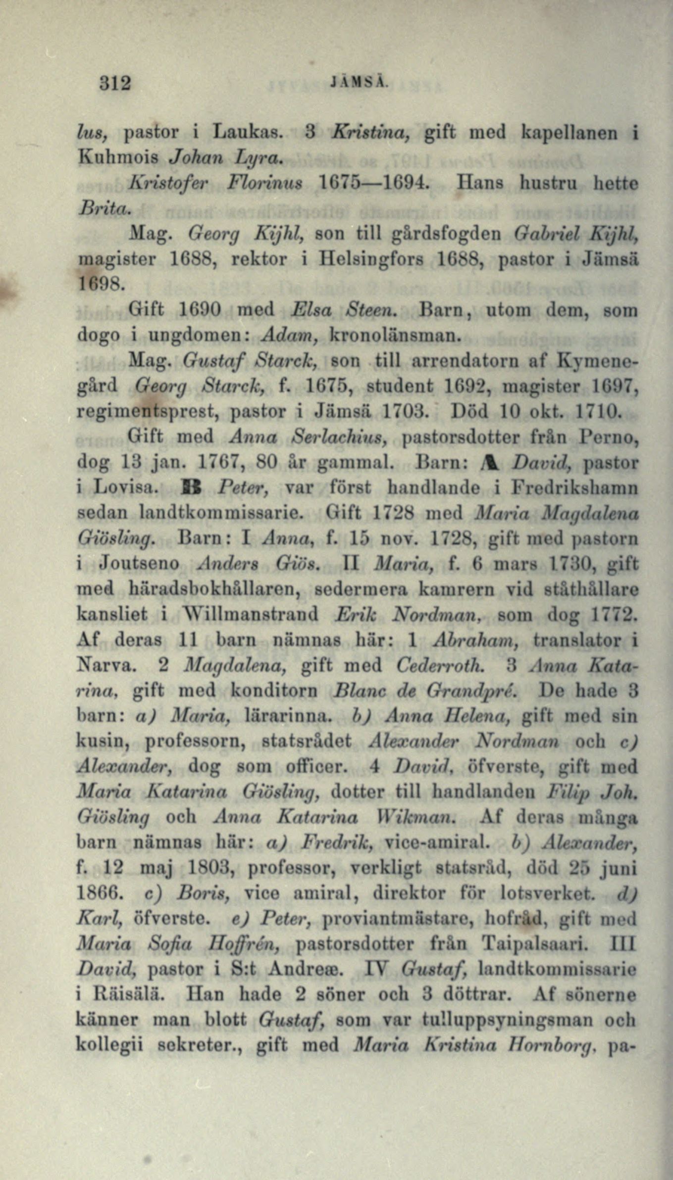 Kymeno-gård Georg Starck, f. 1675, student 1692, magister 1697,