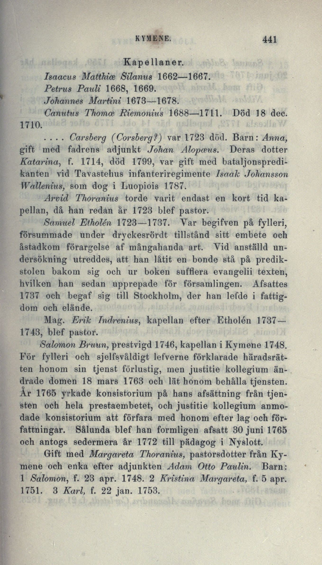Samuel Etholén 1723—1737. Var begifven på fylleri,
