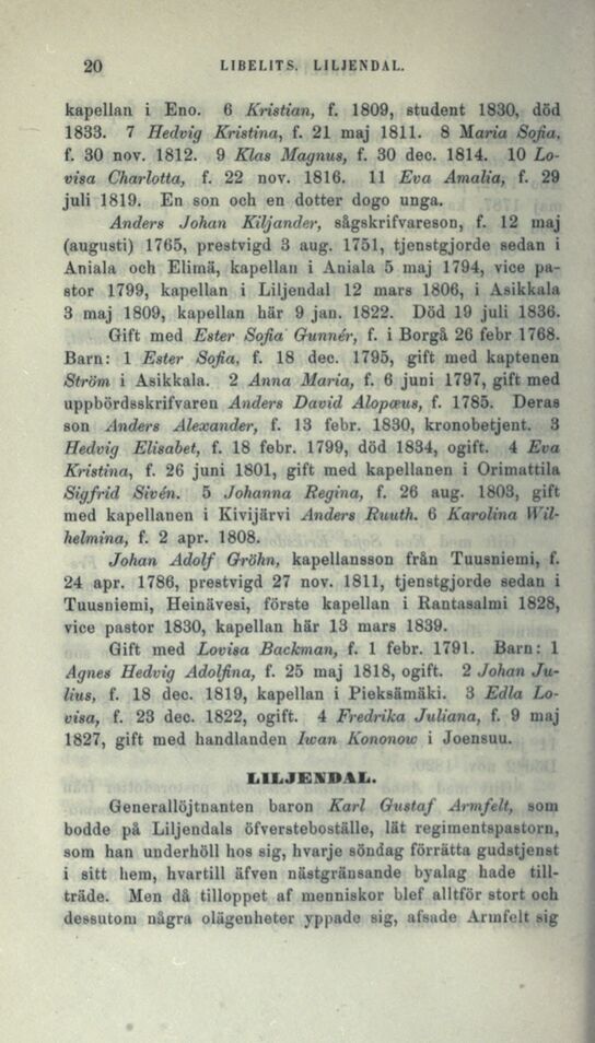 bodde på Liljendals öfversteboställe, lät regimentspastorn,