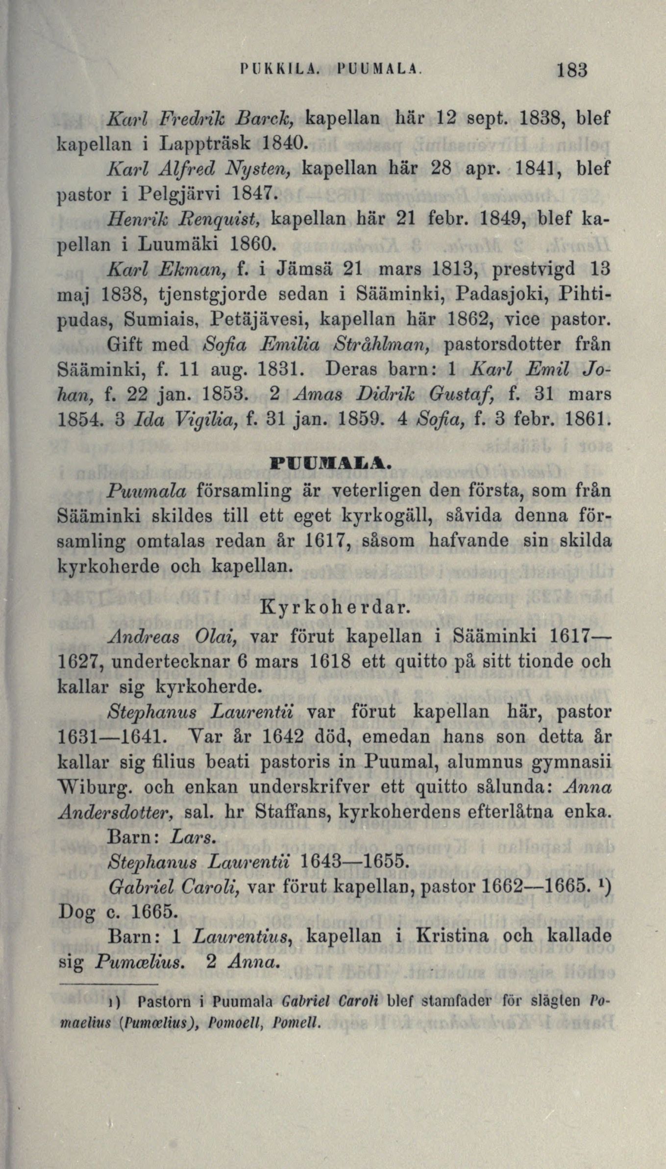 i) Pastorn i Puumala Gabriel Caroli blef stamfader för slägten