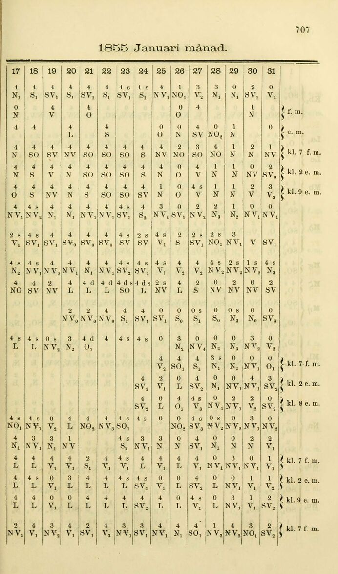 4 SV, 0 l 4 0, 4 s v3 0 NV, 2 NV, 2 V2 0 sv2 \ kl. 8 e. m.
