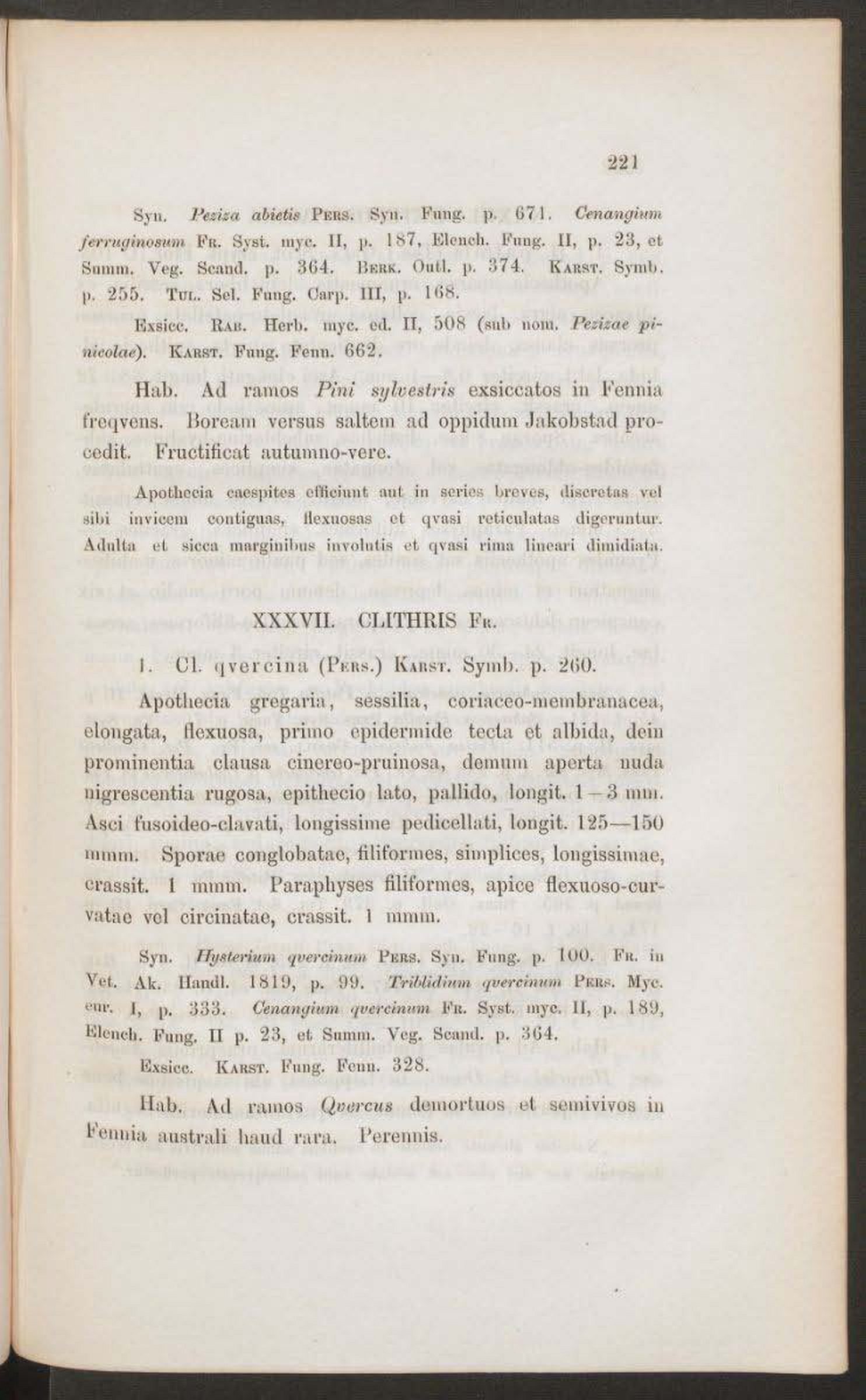 «•nr. 1, p. 333. Cenangium qvcrcinmn Kr. Syst, myc. Il, p. 189,