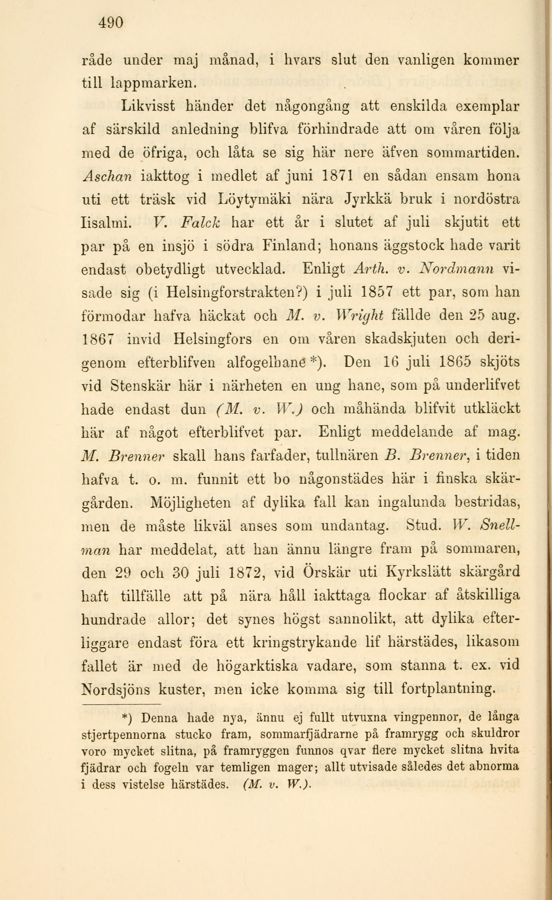förmodar hafva häckat och M. v. Wright fällde den 25 aug.