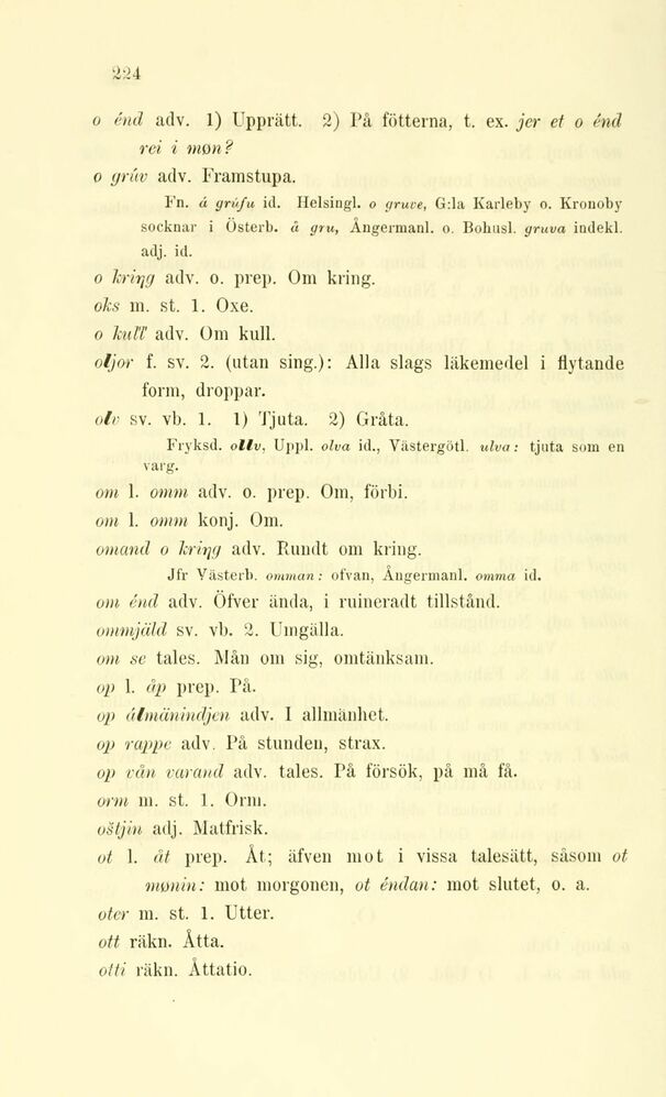 o krirjg adv. o. prep. Om kring.
