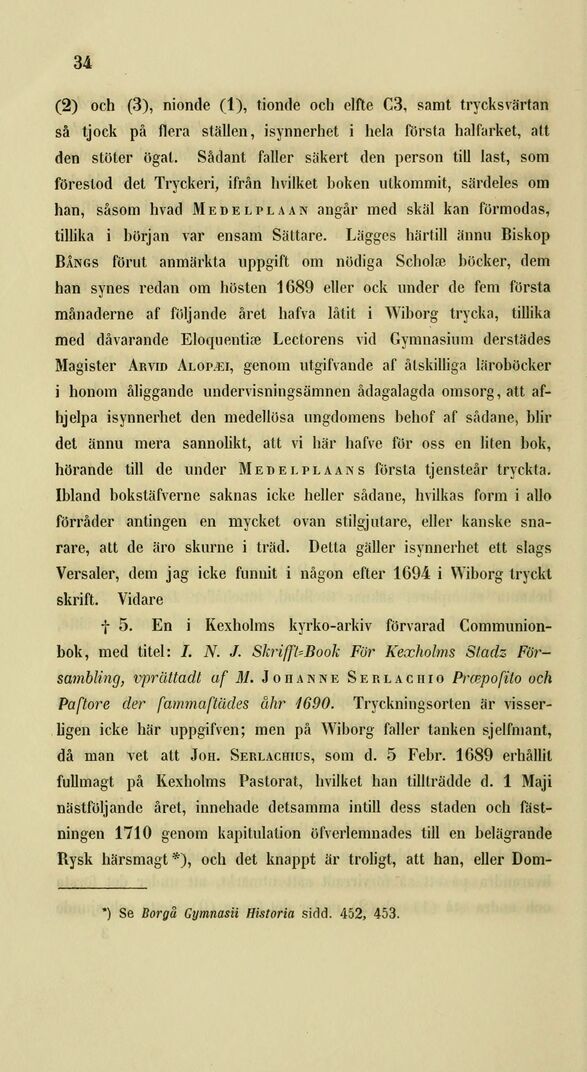 då man vet att Joh. Serlachius, som d. 5 Febr. 1689 erhållit