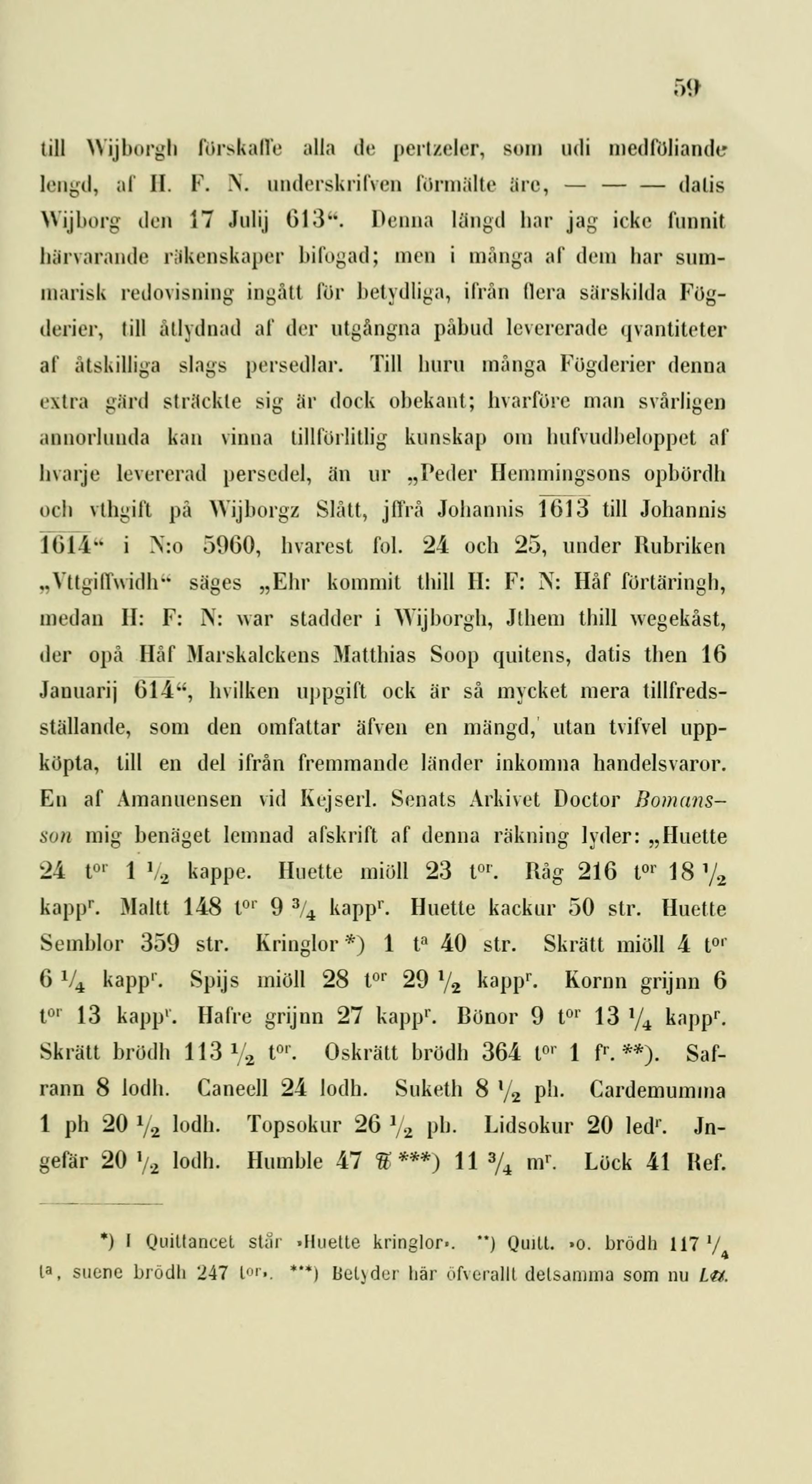 Wijborg den 17 Julij 013“. Denna längd har jag icke funnit