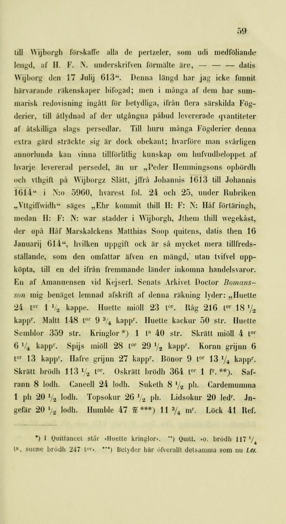 Bomans-son mig benäget lemnad afskrift af denna räkning lyder: „IIuette