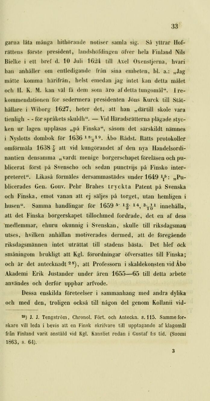 stycken ur lagen uppläsas „på Finska“, såsom det särskildt nämnes