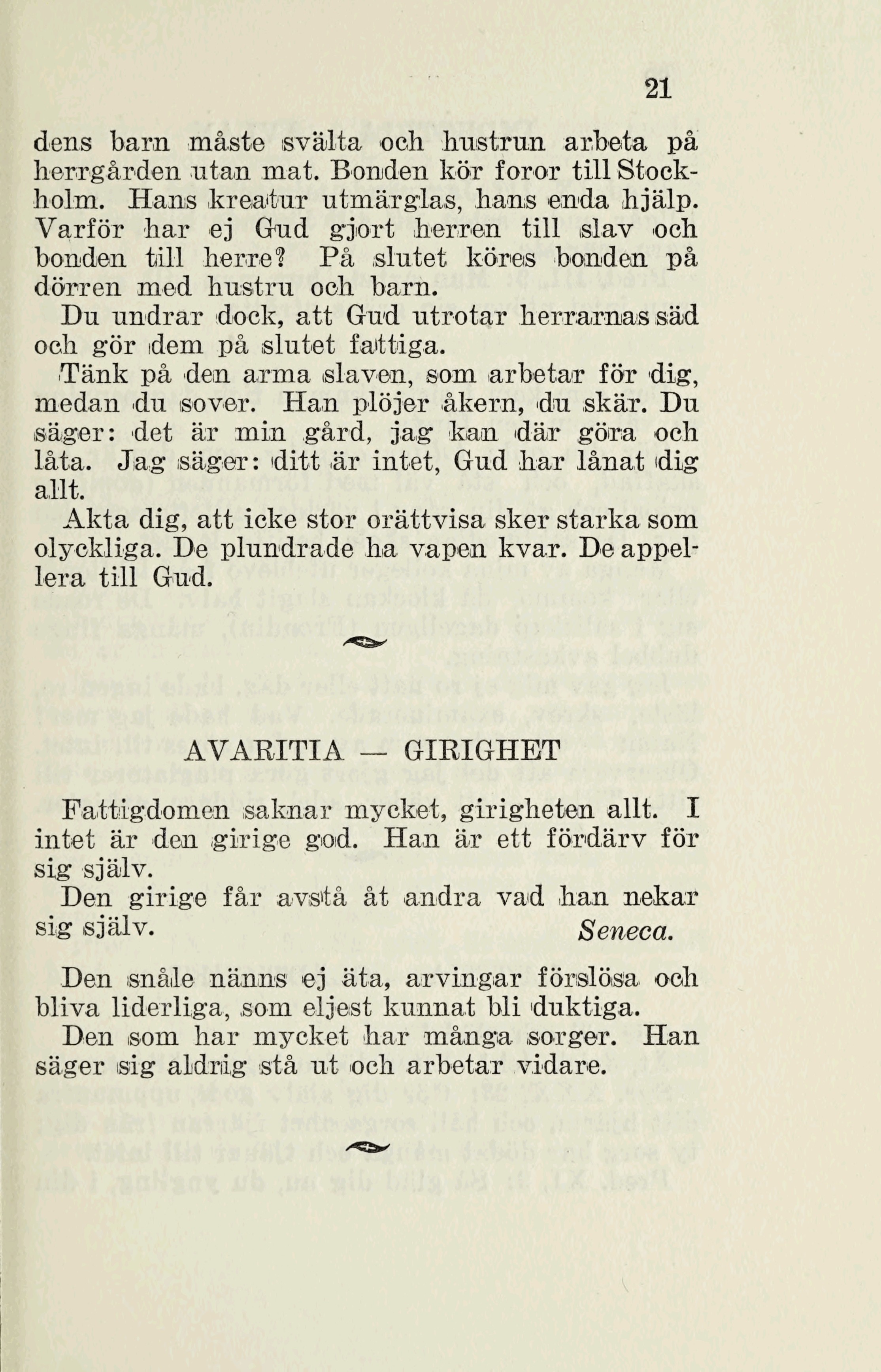 Fattigdomen saknar mycket, girigheten allt. I