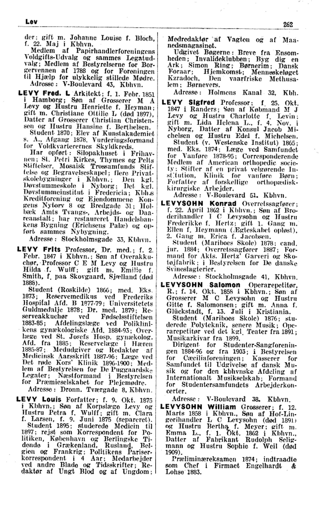 LEVY Sigfred Professor; f. 25.
