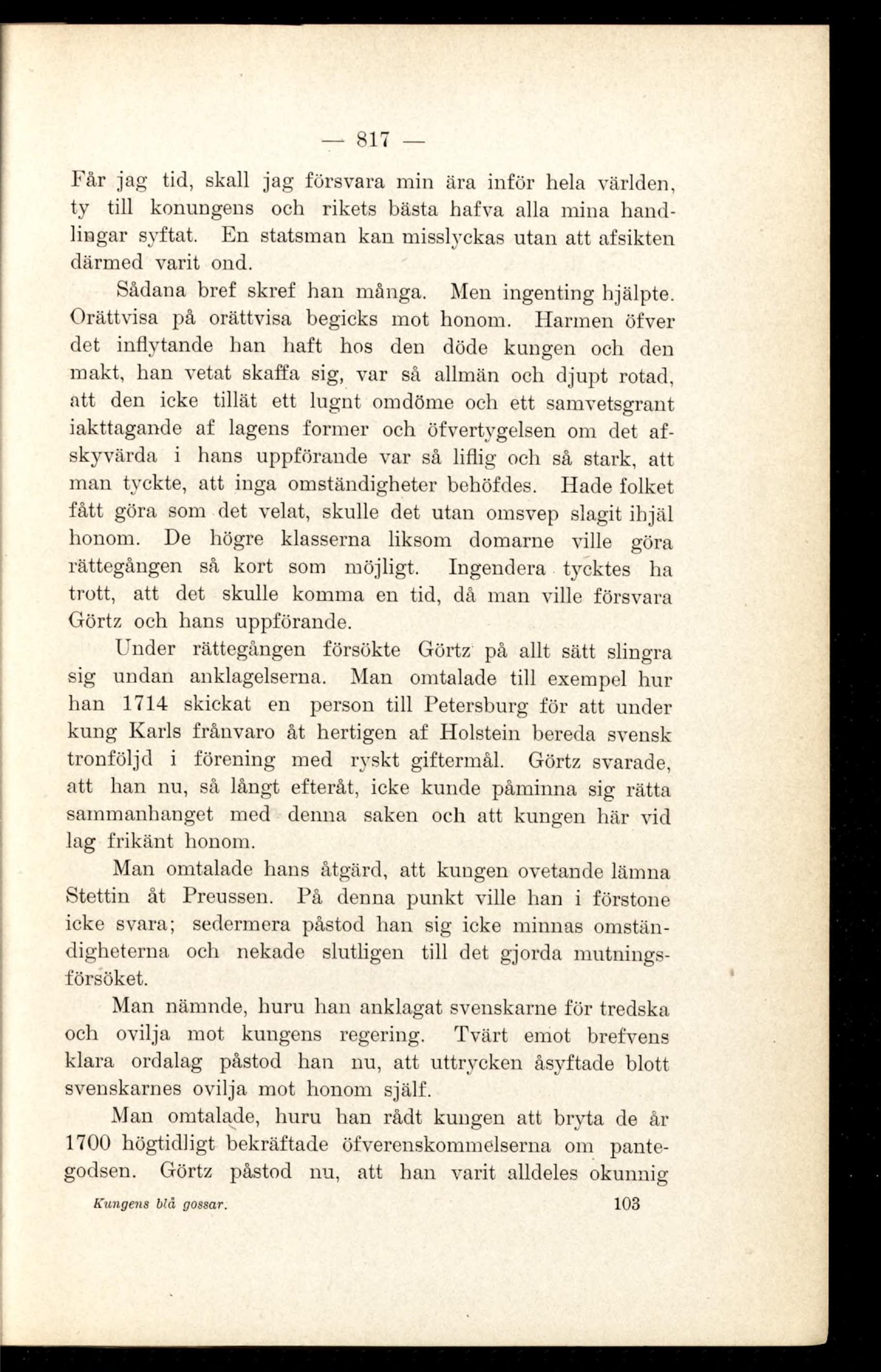 tronföljd i förening med ryskt giftermål. Görtz svarade,