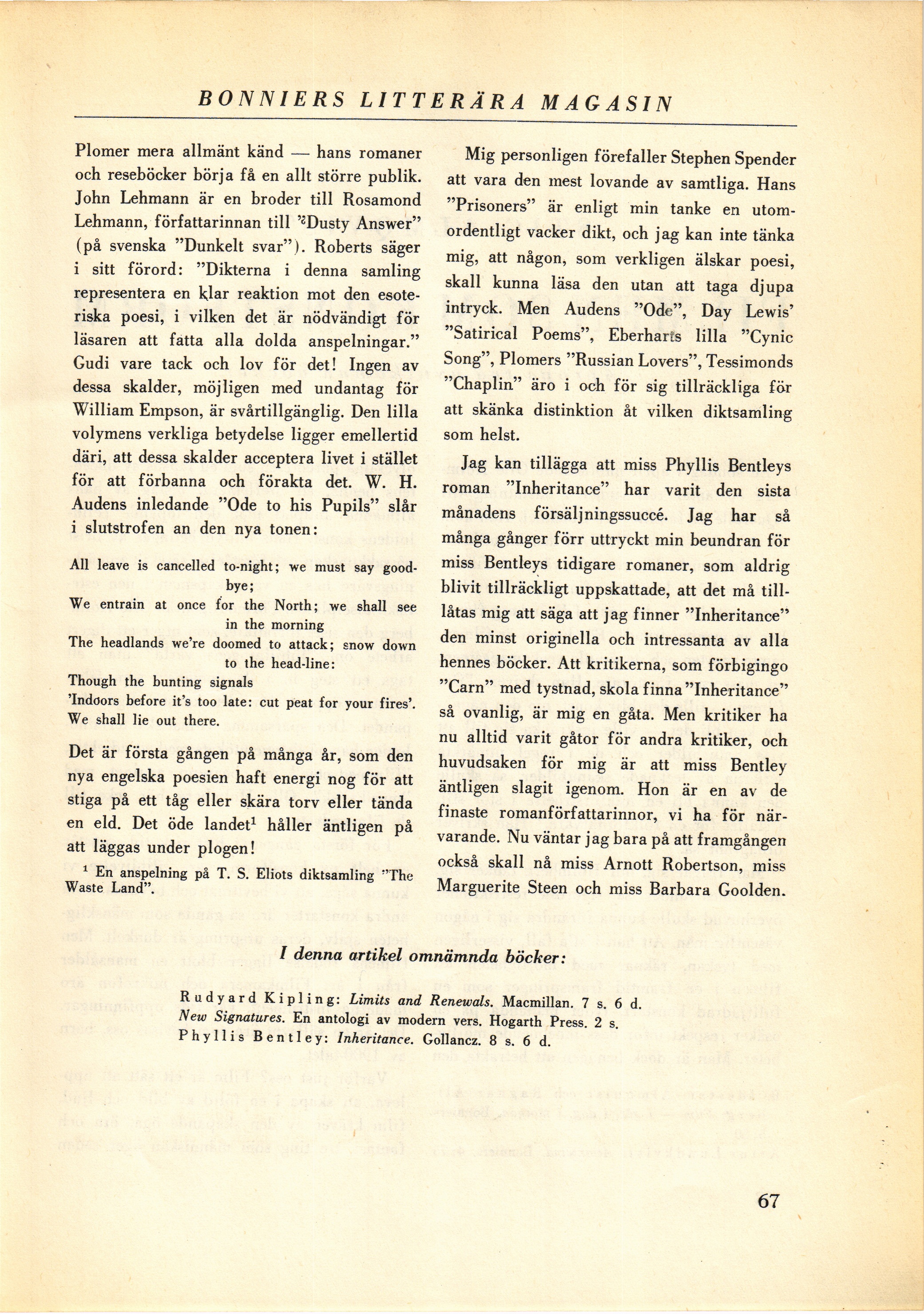 1 En anspelning på T. S. Eliots diktsamling ”The