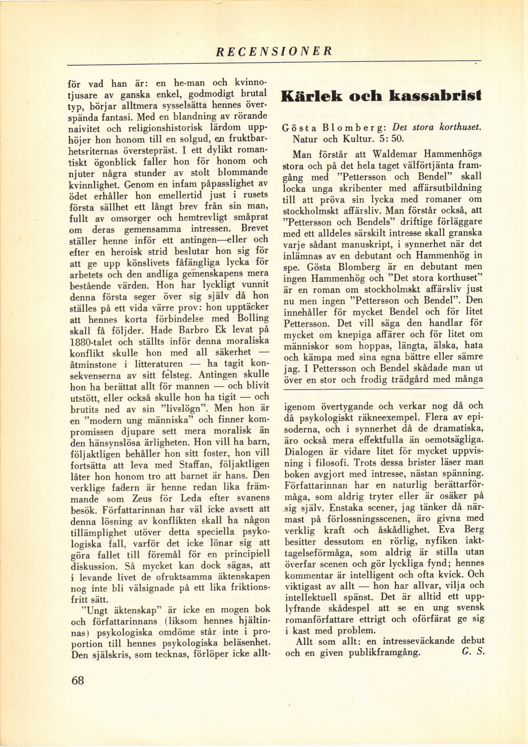Full resolution (JPEG) - On this page / på denna sida - N:r 8. Oktober 1932 - Recensioner - G. S.: Ungt äktenskap - G. S.: Kärlek och kassabrist