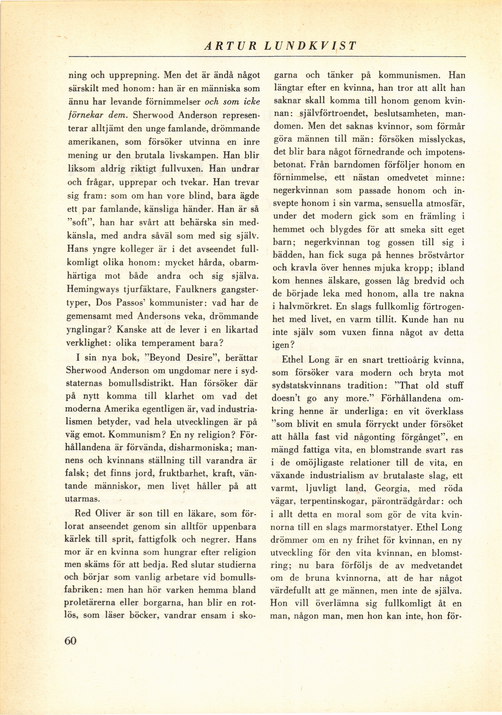 Sherwood Anderson om ungdomar nere i