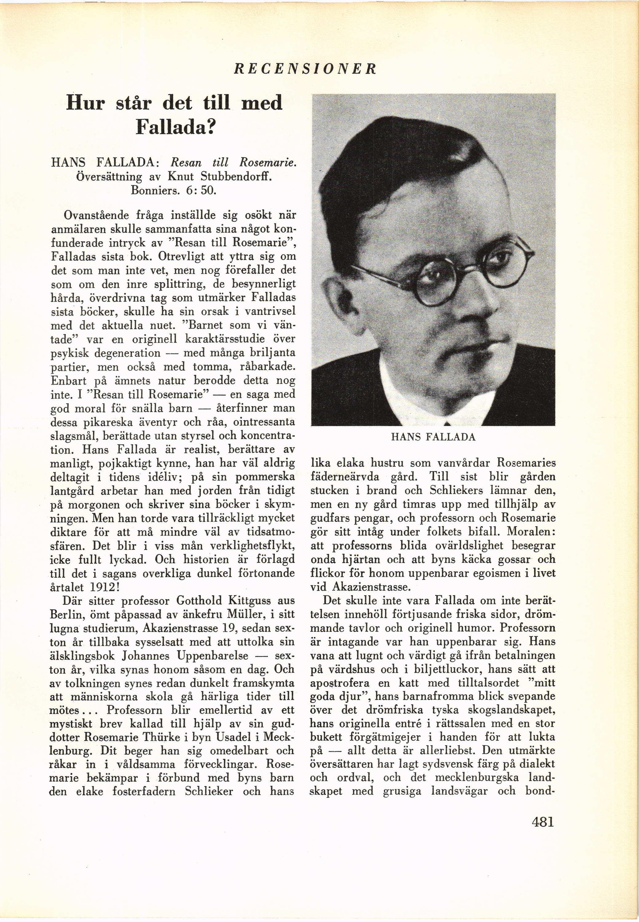 Full resolution (JPEG) - On this page / på denna sida - N:r 6. Juni-augusti 1936 - Recensioner - Margit Abenius: Hur står det till med Fallada?