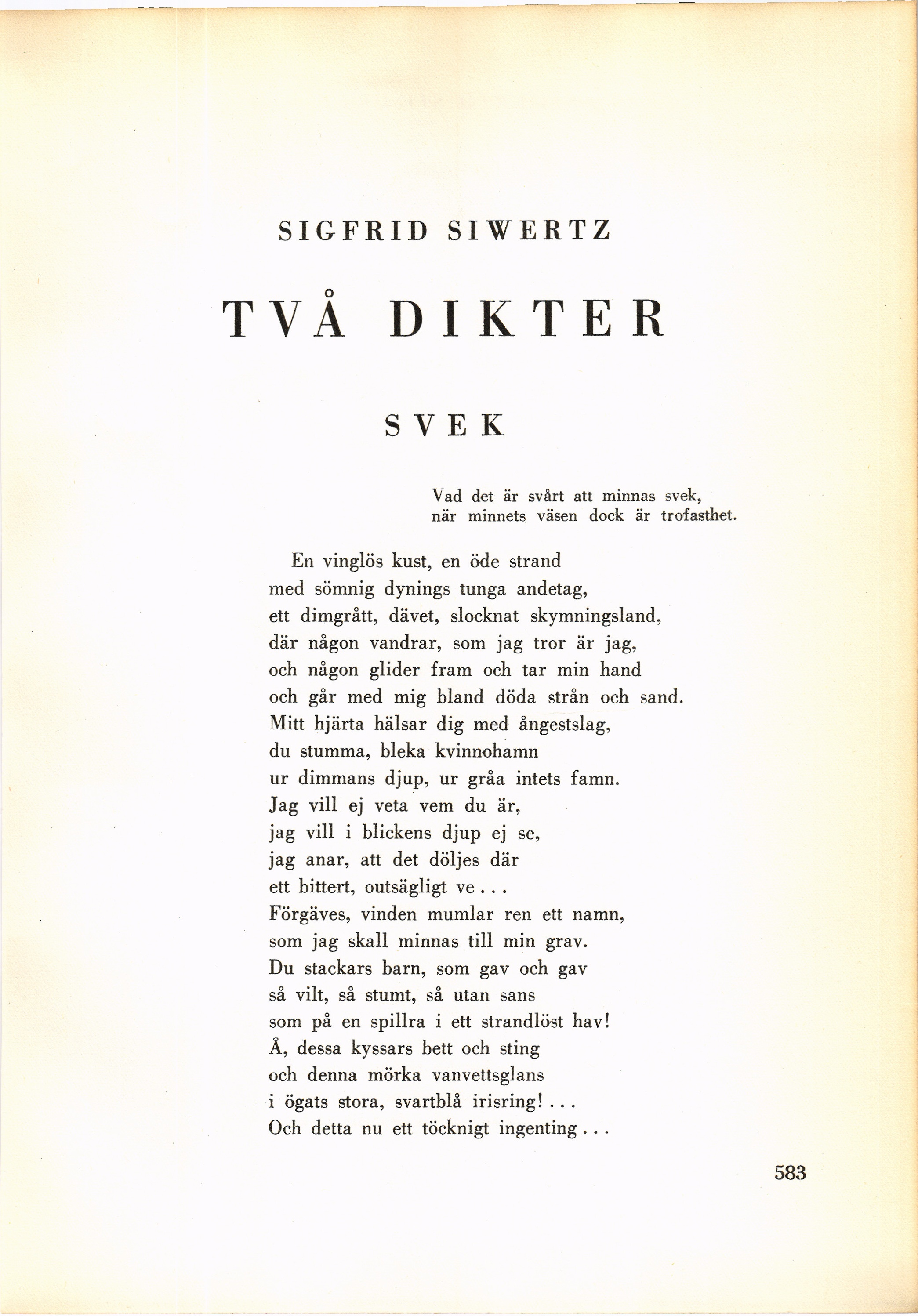 Full resolution (JPEG) - On this page / på denna sida - N:r 8. Oktober 1936 - Sigfrid Siwertz: Två dikter - Svek