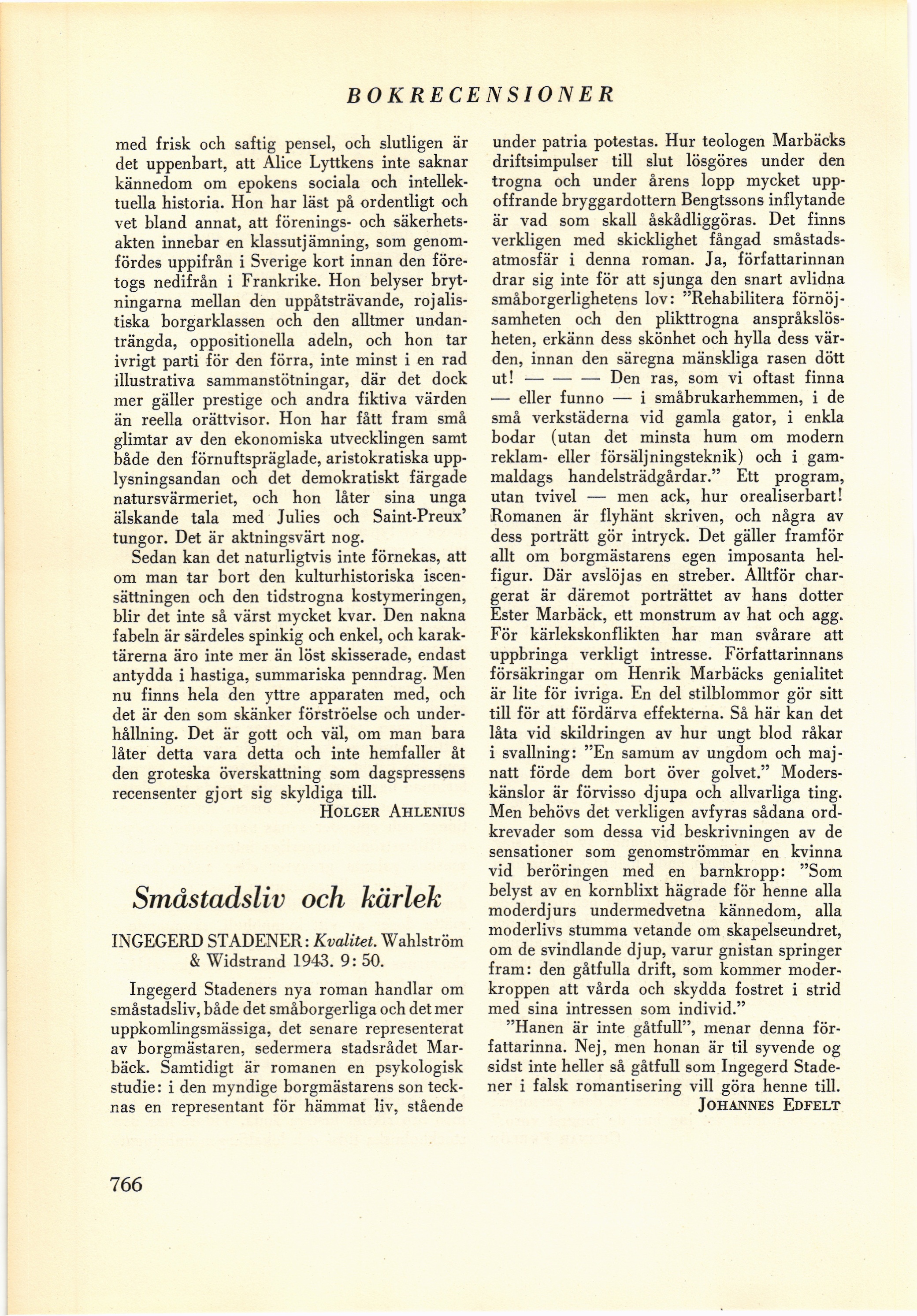 INGEGERD STADENER: Kvalitet. Wahlström