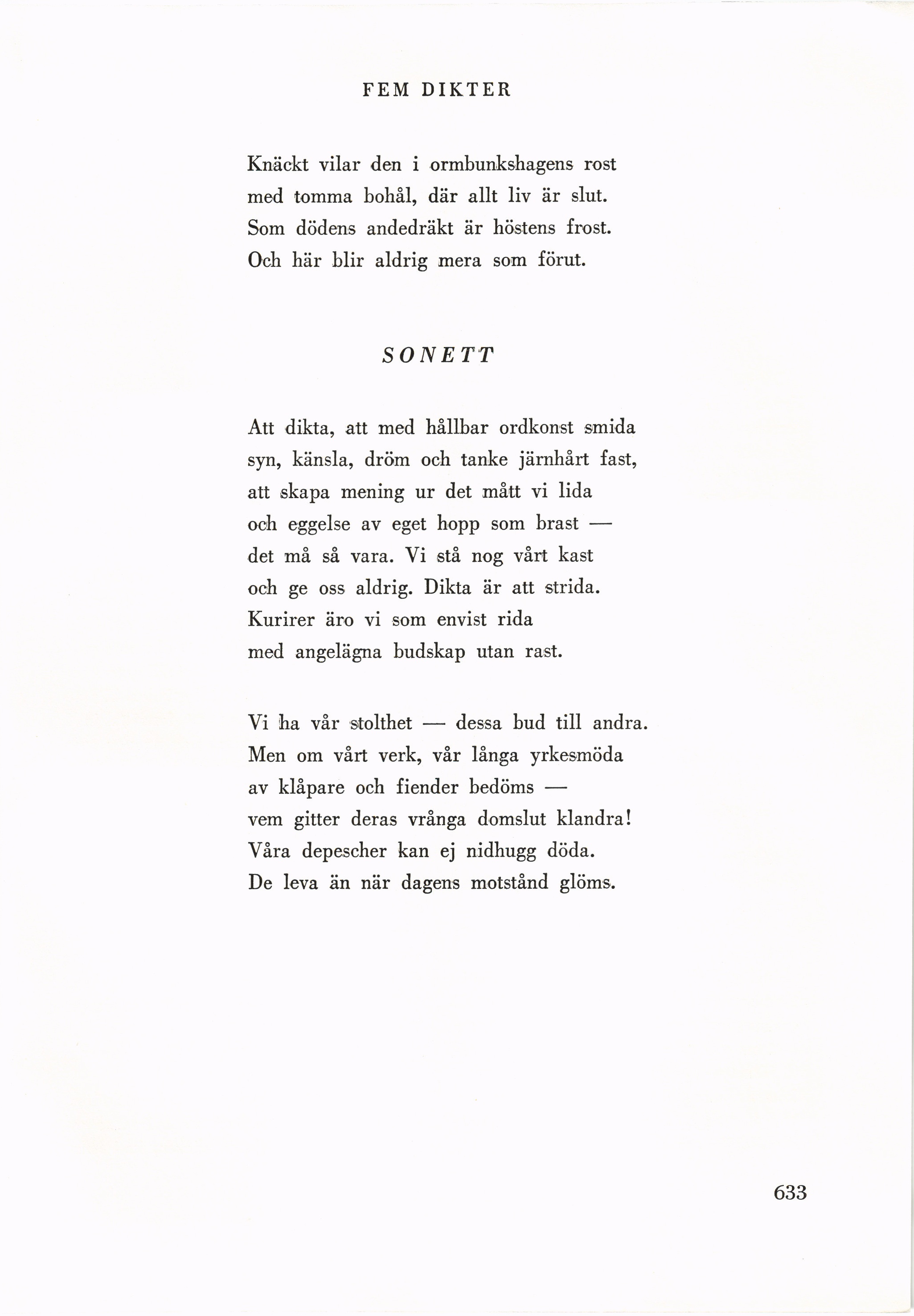 Full resolution (JPEG) - On this page / på denna sida - Oktober. N:r 8 - Einar Malm: Fem dikter - Veteranen - Sonett