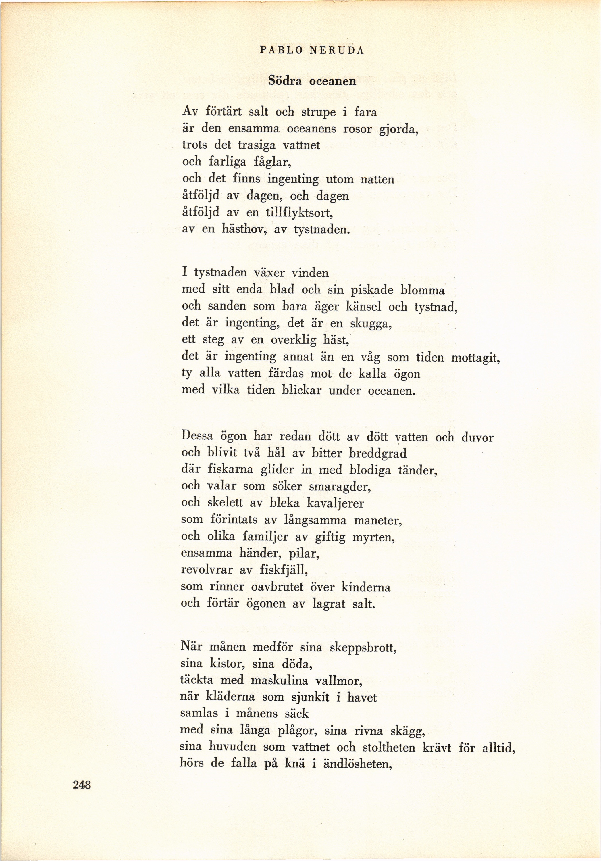 Full resolution (JPEG) - On this page / på denna sida - April. N:r 4 - Pablo Neruda: Tre dikter, tolkade av Artur Lundkvist och M. J. P. Casanovas - Södra oceanen