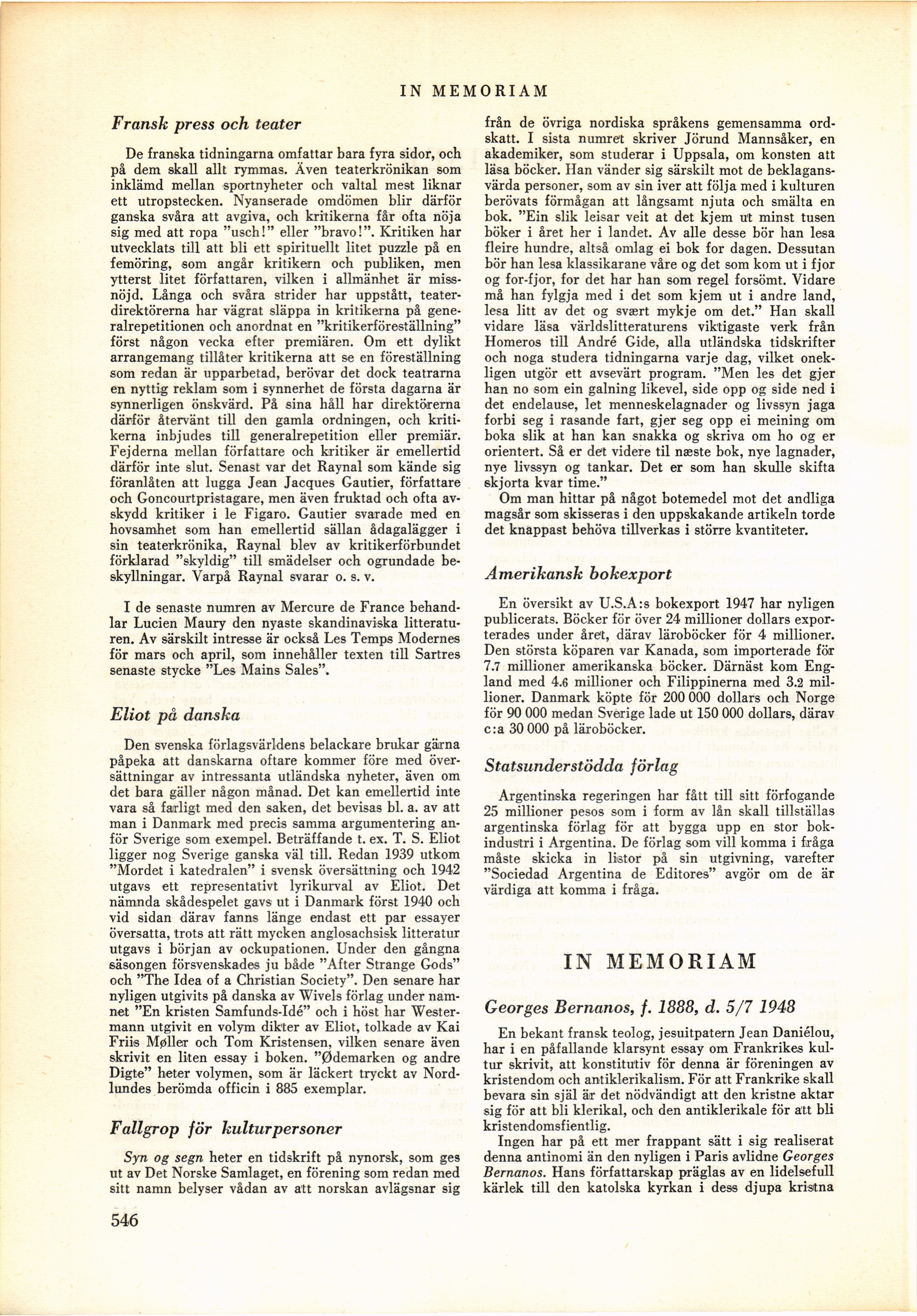 Full resolution (JPEG) - On this page / på denna sida - September. N:r 7 - Notiser - In memoriam - Georges Bernanos