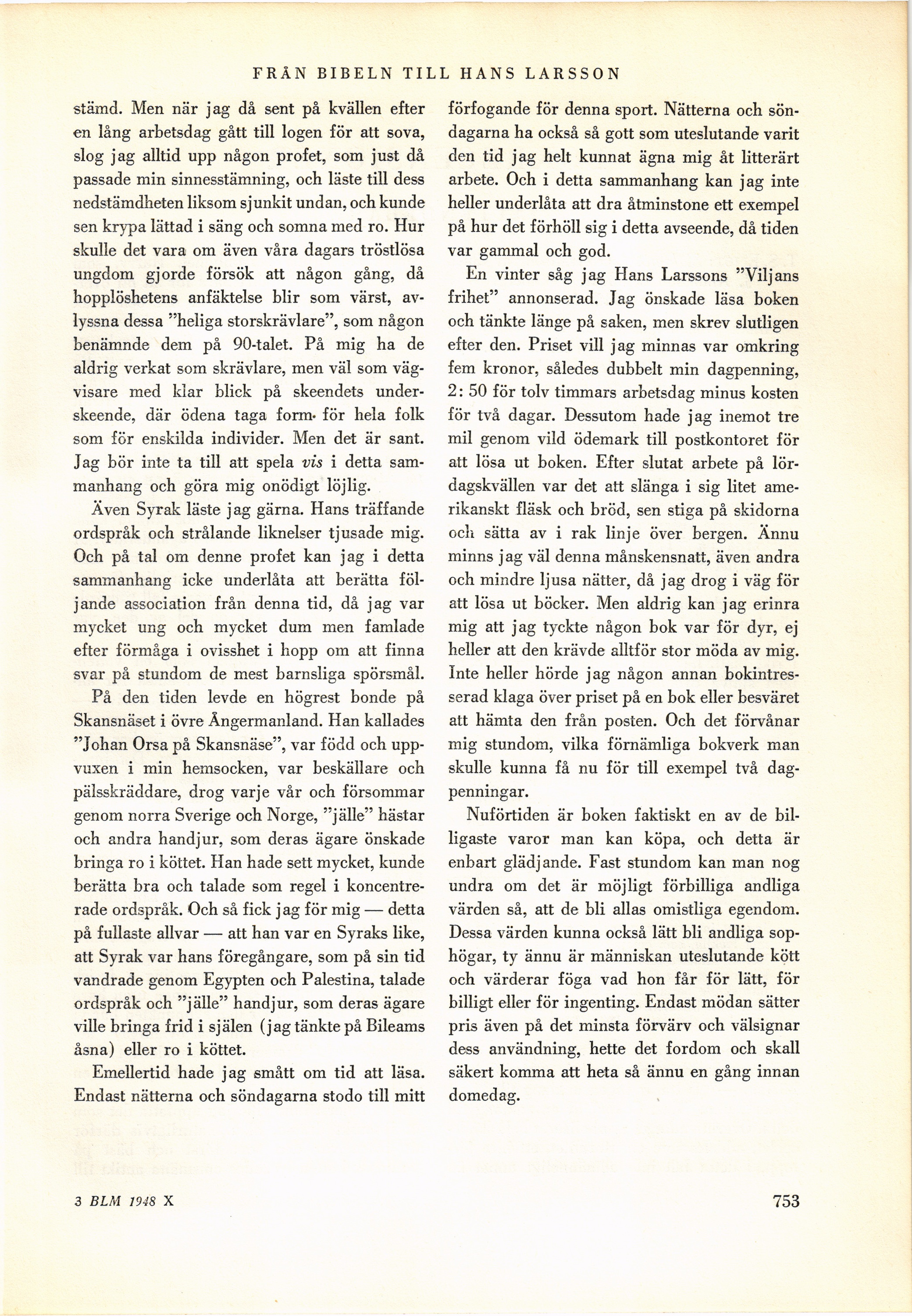 FRÅN BIBELN TILL HANS LARSSON