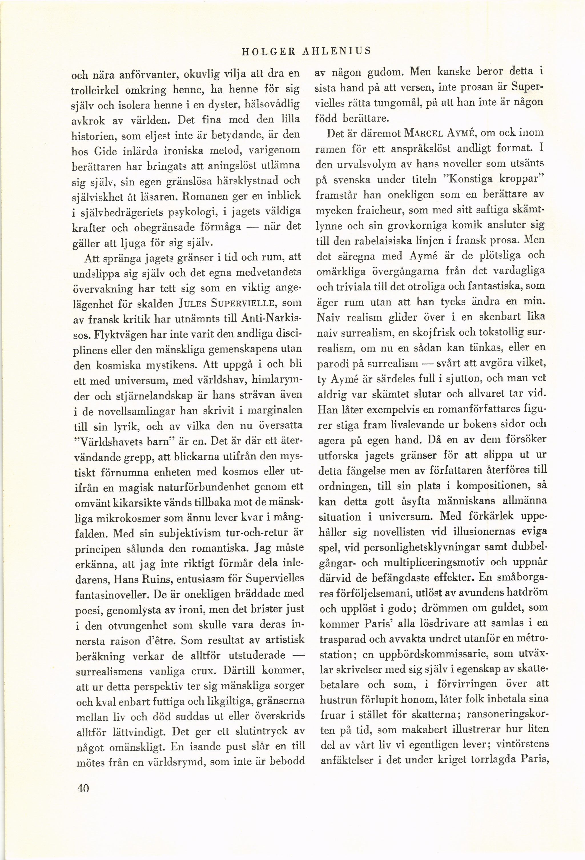 inledarens, Hans Ruins, entusiasm för Supervielles