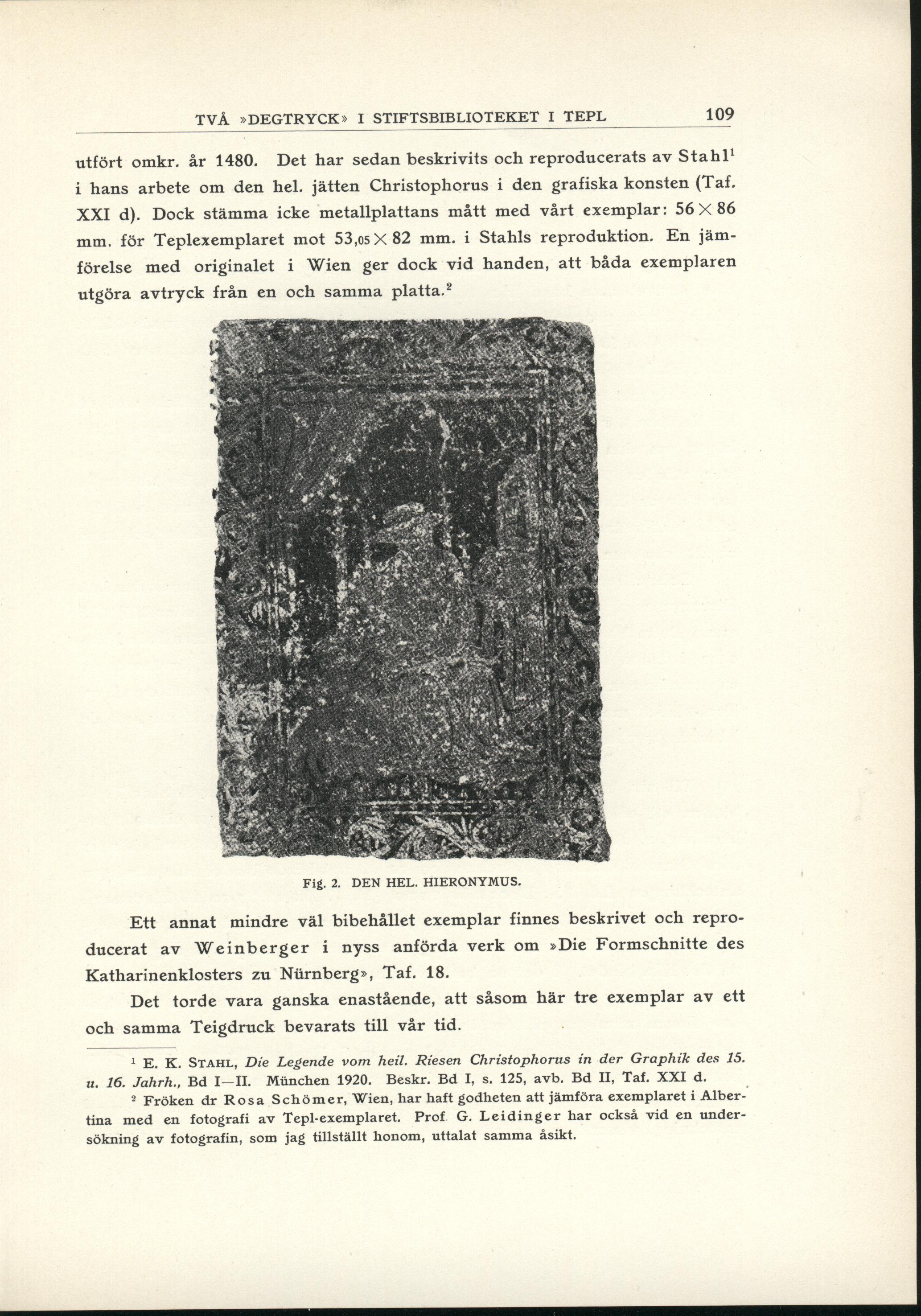 Full resolution (JPEG) - On this page / på denna sida - Två »degtryck» i stiftsbiblioteket i Tepl. Av Isak Collijn, Stockholm