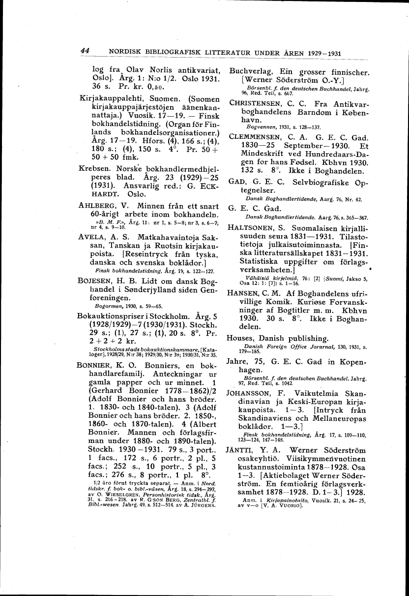 44 NORDISK BIBLIOGRAFISK LITTERATUR UNDER ÅREN 1929-1931